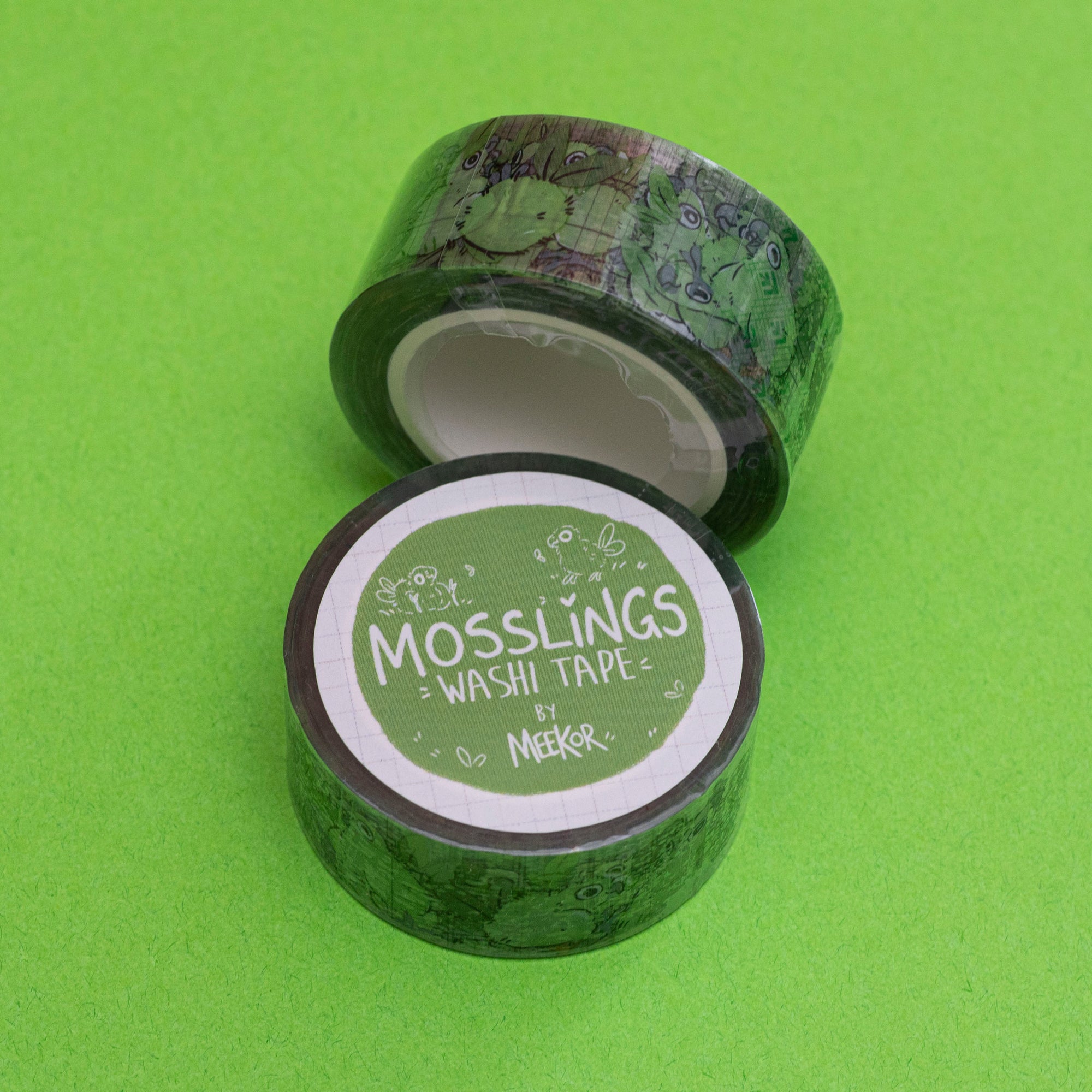 Decorate all of your favourite things with this adorable Mossling Washi Tape. It features a cute pattern of mossling creatures with a clear transparent background with a faint grid pattern.Washi tape is perfect for decorating journals, letters, scrapbooking and more! You can even use it as a masking tape for artwork!Washi is made from Japanese shrubs and hemp. It is paper based making it recyclable and compossible!