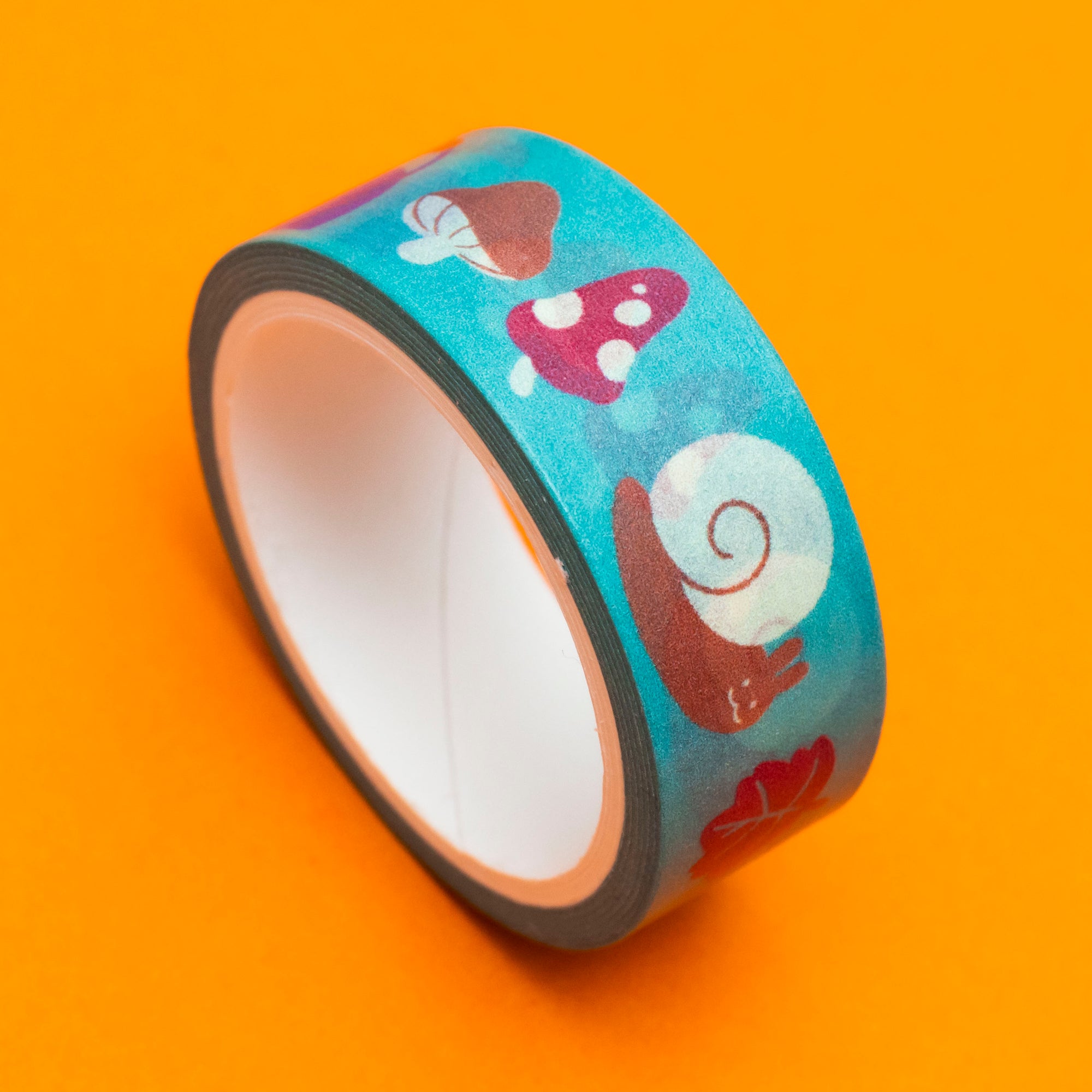 The sound of crunchy leaves and rainy afternoons all around. Perfect weather for mushrooms and fungi about the forest. A Mushroomy Original washi tape adorned with sights from the woods.