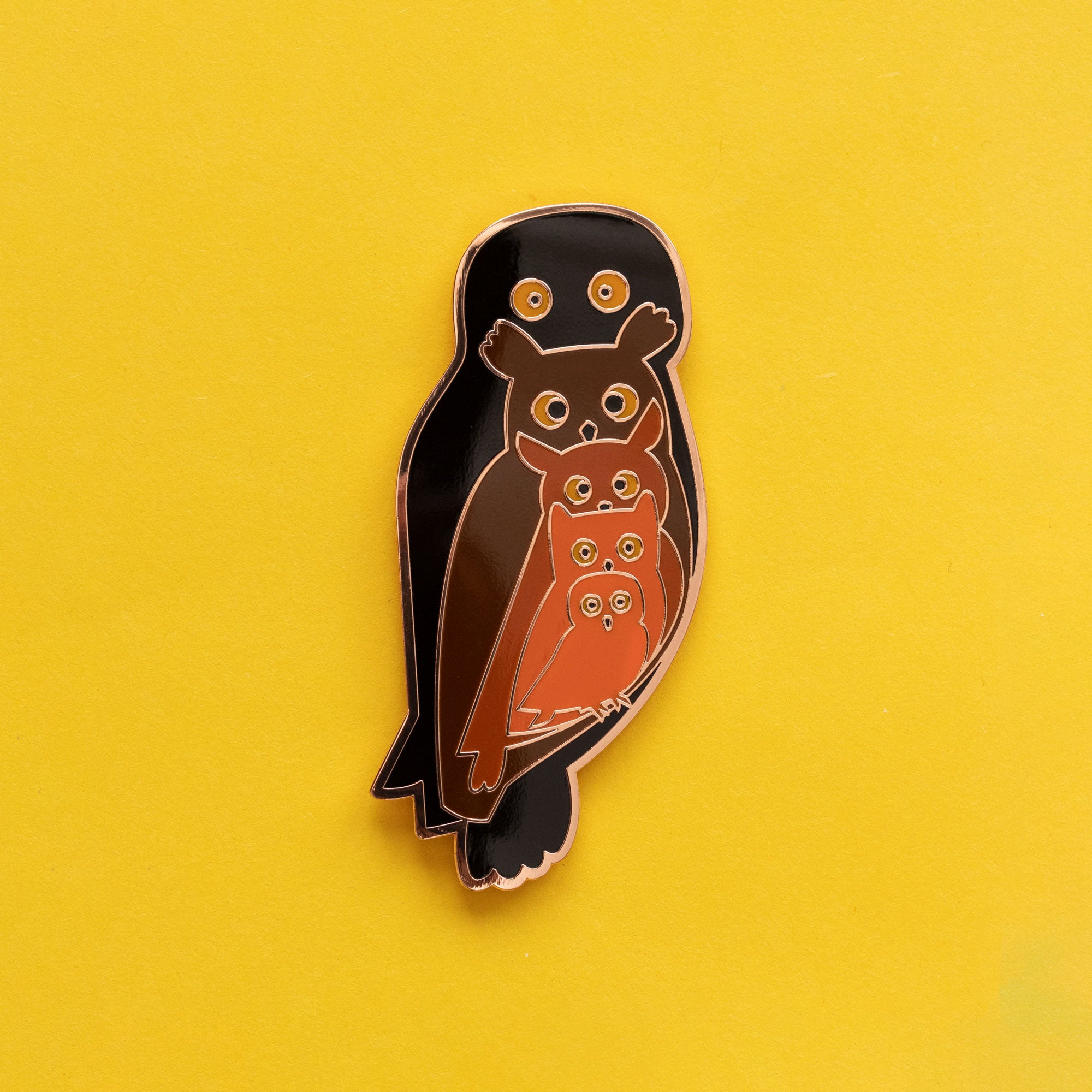 Featuring the Great Gray, Great Horned, Long-eared, Screech, and Saw-whet owls nested together for the first time on a single pin!
