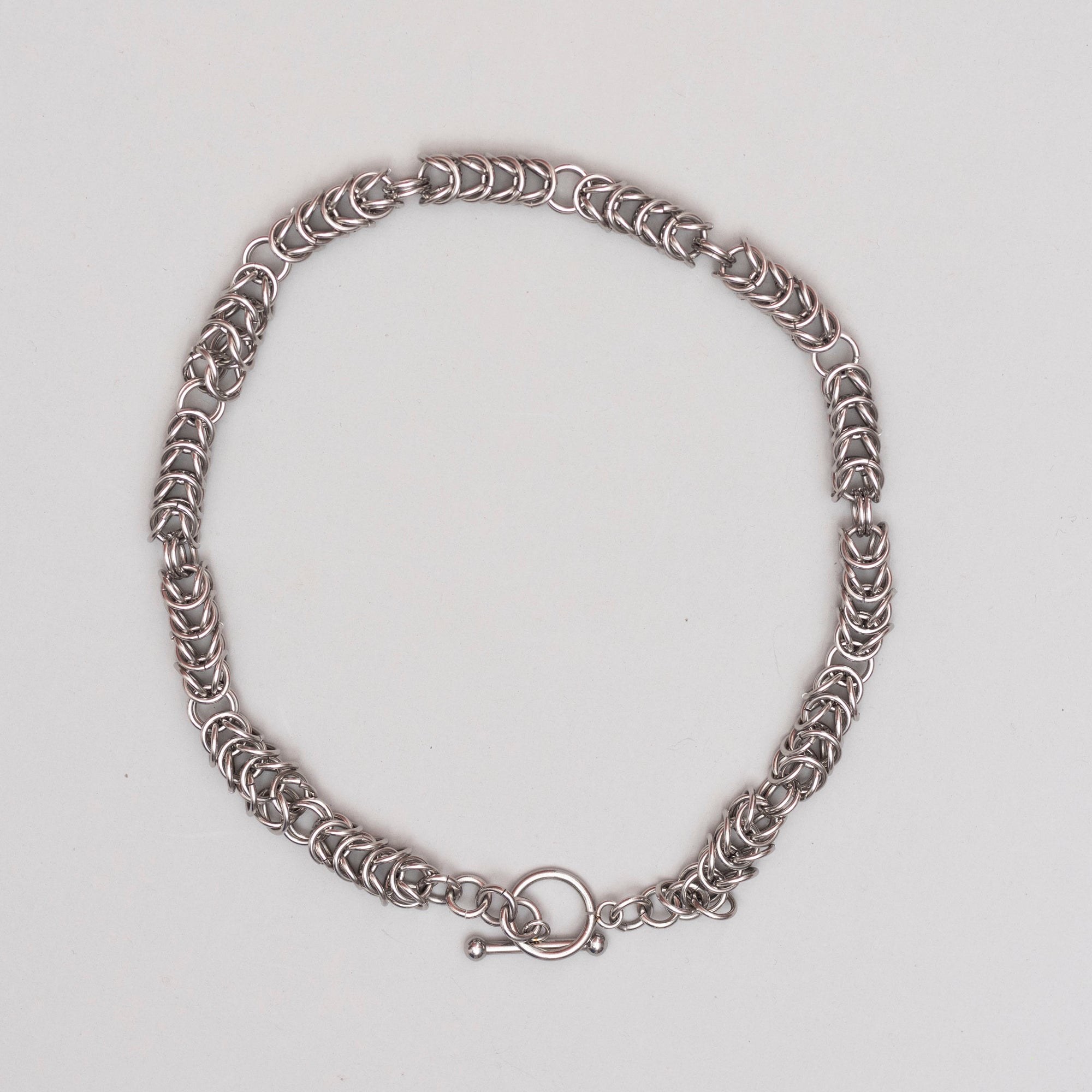 Handwoven stainless steel chainmaille necklace made with love in Bulleke-bek, Narrm.