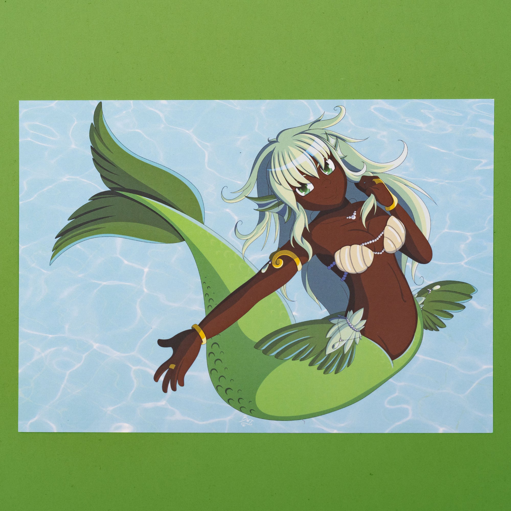 Matcha's here to brighten your day! If you love mermaids this print is the perfect addition to your collection. This design is also available as a wooden charm and a sticker.