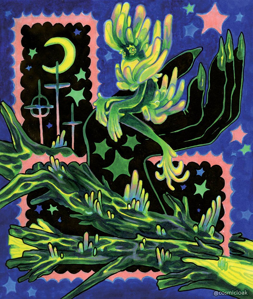 Character and art inspired by the "Deadman's Fingers" mushroom. Printed on Satin 260gms paper.