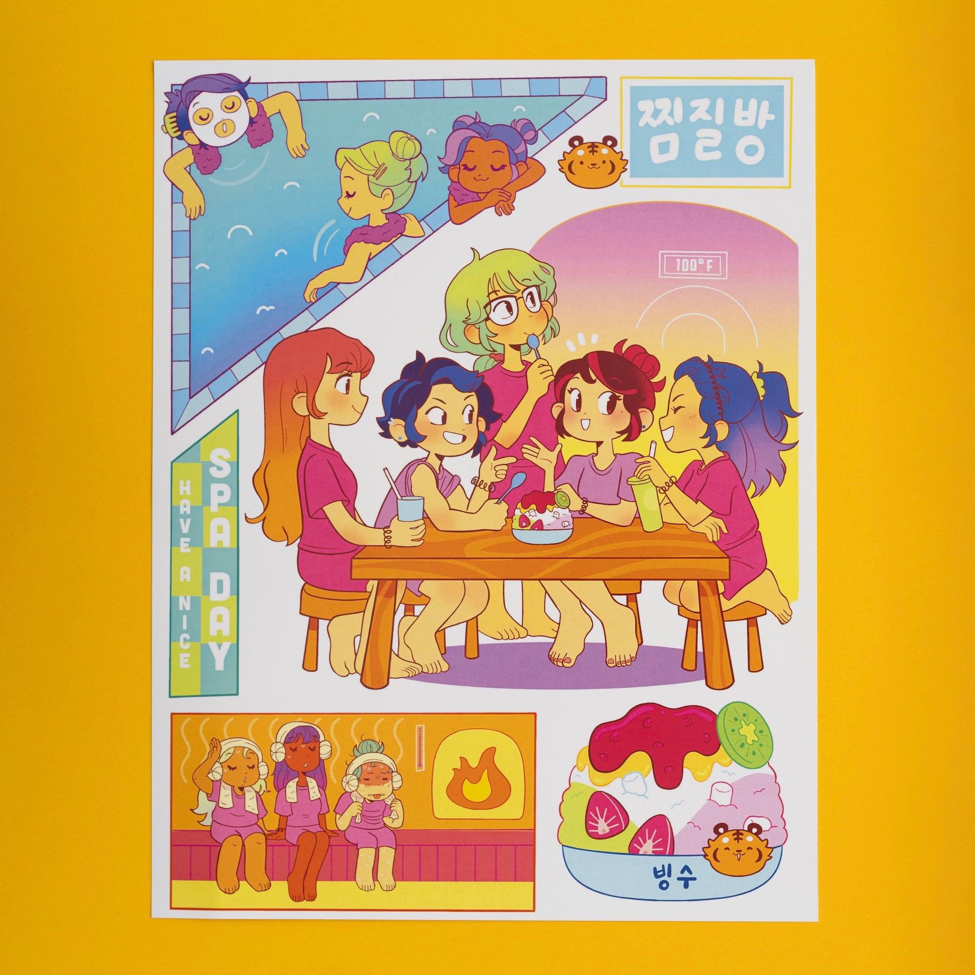 A colorful tribute to a spa day with the girlies! The perfect print for those who love to relax at the Korean spa.