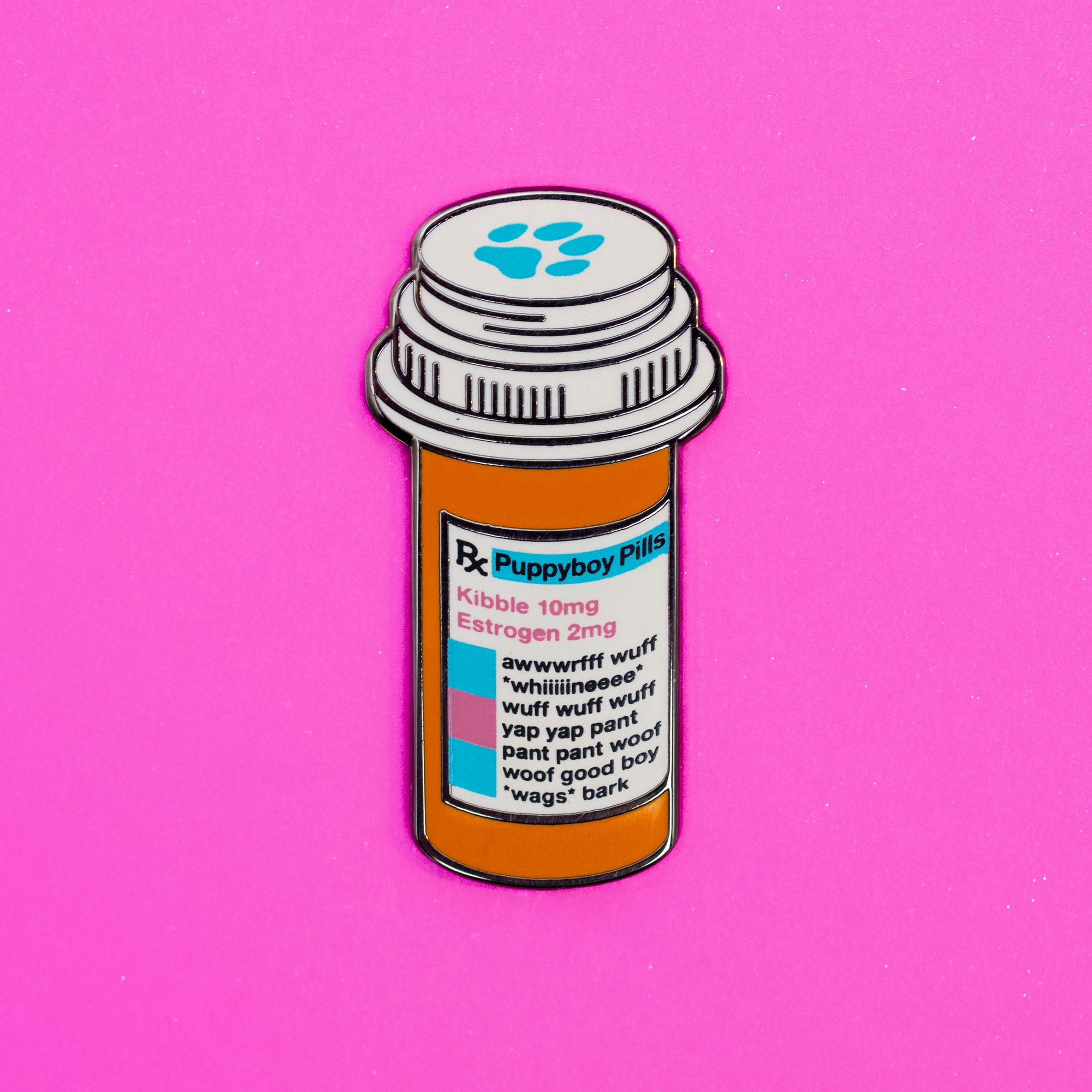 DO NOT INGEST! This is just an enamel pin, not actual puppyboy estrogen pills. Contact your health care provider/veterinarian for the real thing.