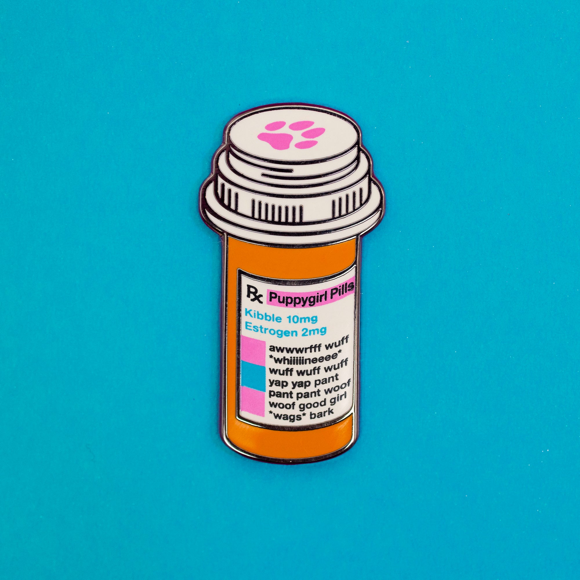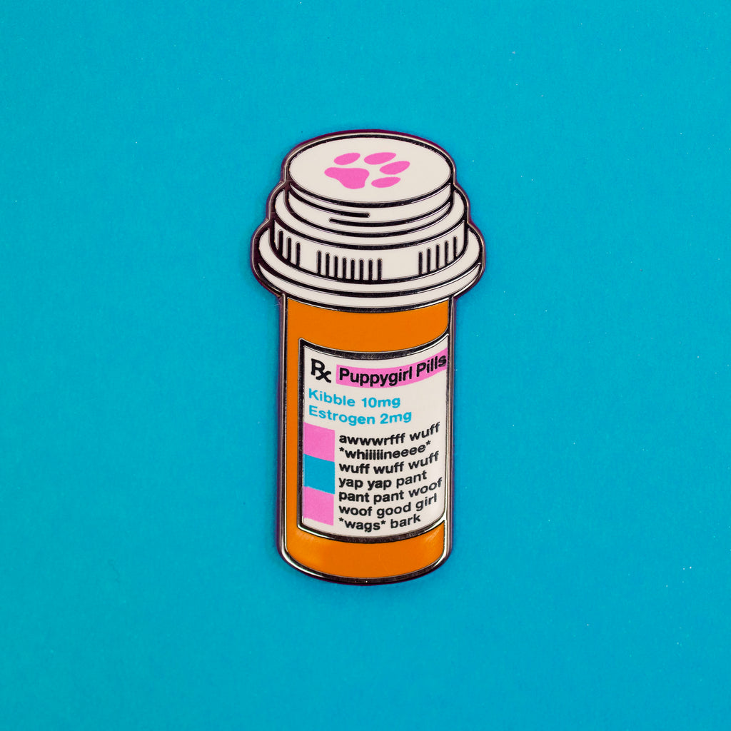 DO NOT INGEST! This is just an enamel pin, not actual puppygirl estrogen pills. Contact your health care provider/veterinarian for the real thing.