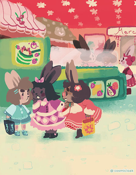 Bunny friends hanging out at the mall. Printed on Satin 260gms paper.