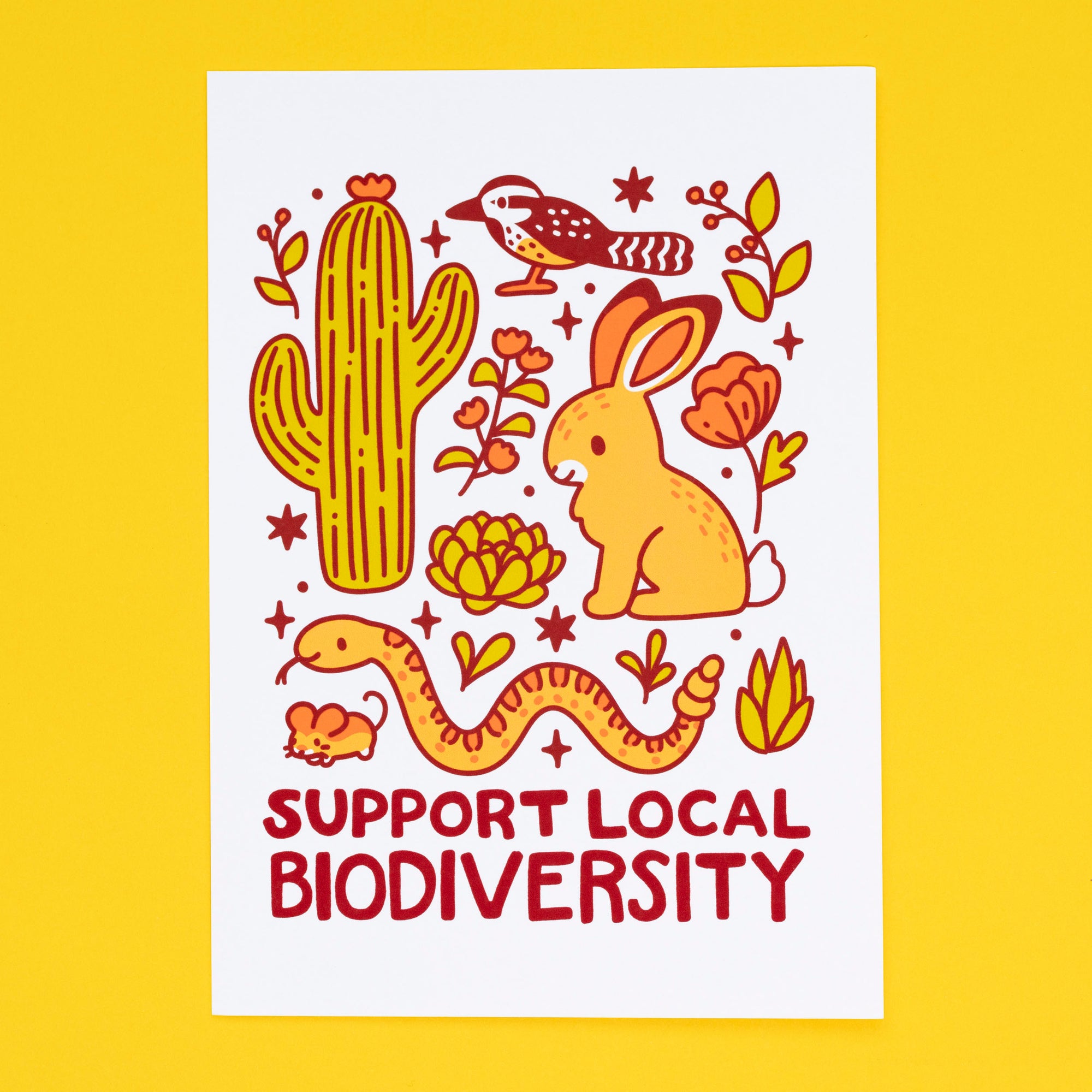 This print is printed on textured archival paper and is signed on the back. It measures 5" x 7". Printed on archival-quality paper and shipped with recycled cardboard backing in a protective cellophane sleeve