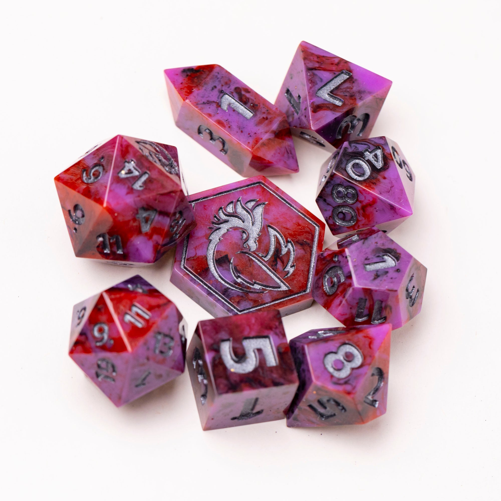 Please Note: All dice are handmade, and as such, may have small imperfections, but will not effect the gameplay nor the rolls of the die itself. I will endeavor to note any marks contained in each set, if they are present.