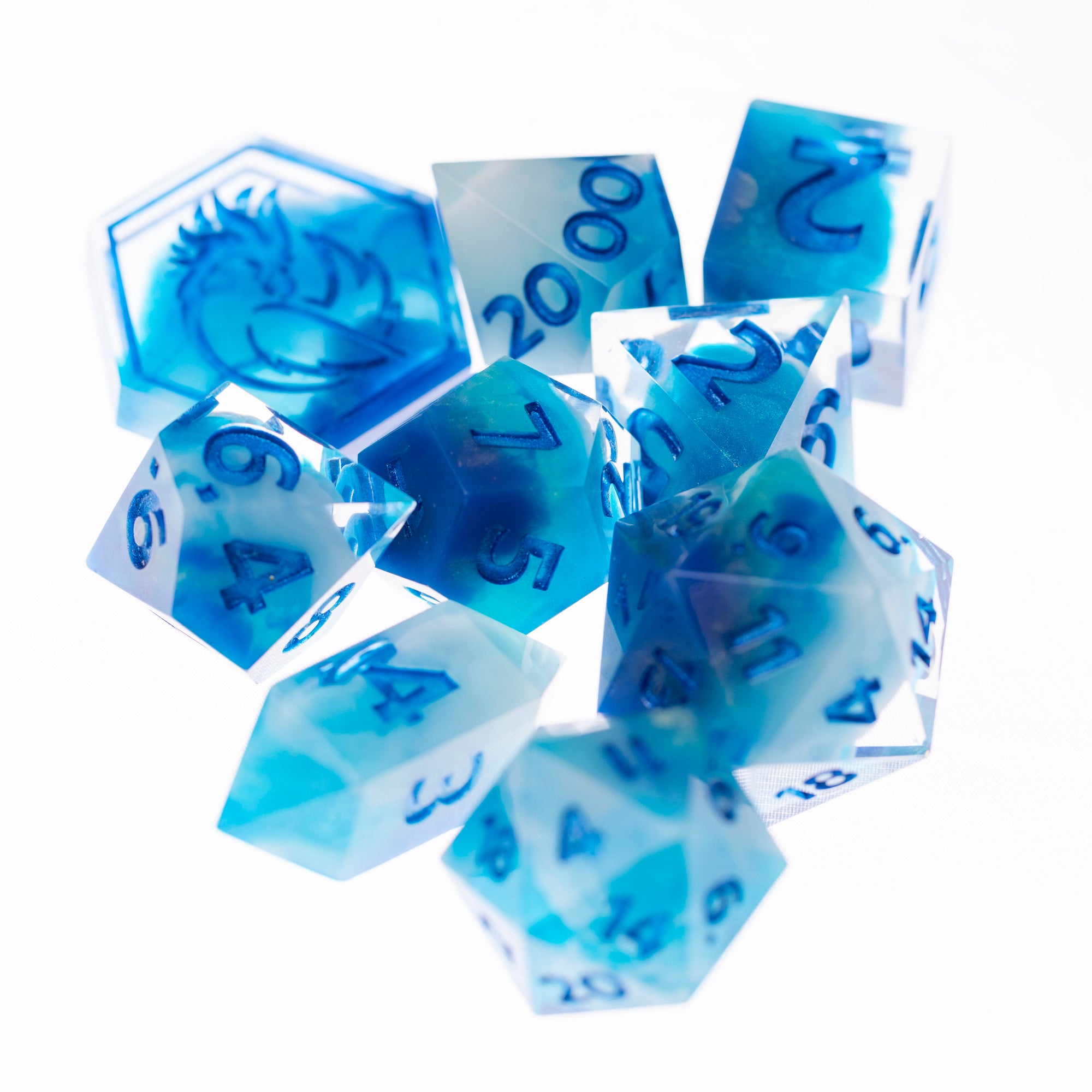 Please Note: All dice are handmade, and as such, may have small imperfections, but will not effect the gameplay nor the rolls of the die itself. I will endeavor to note any marks contained in each set, if they are present.