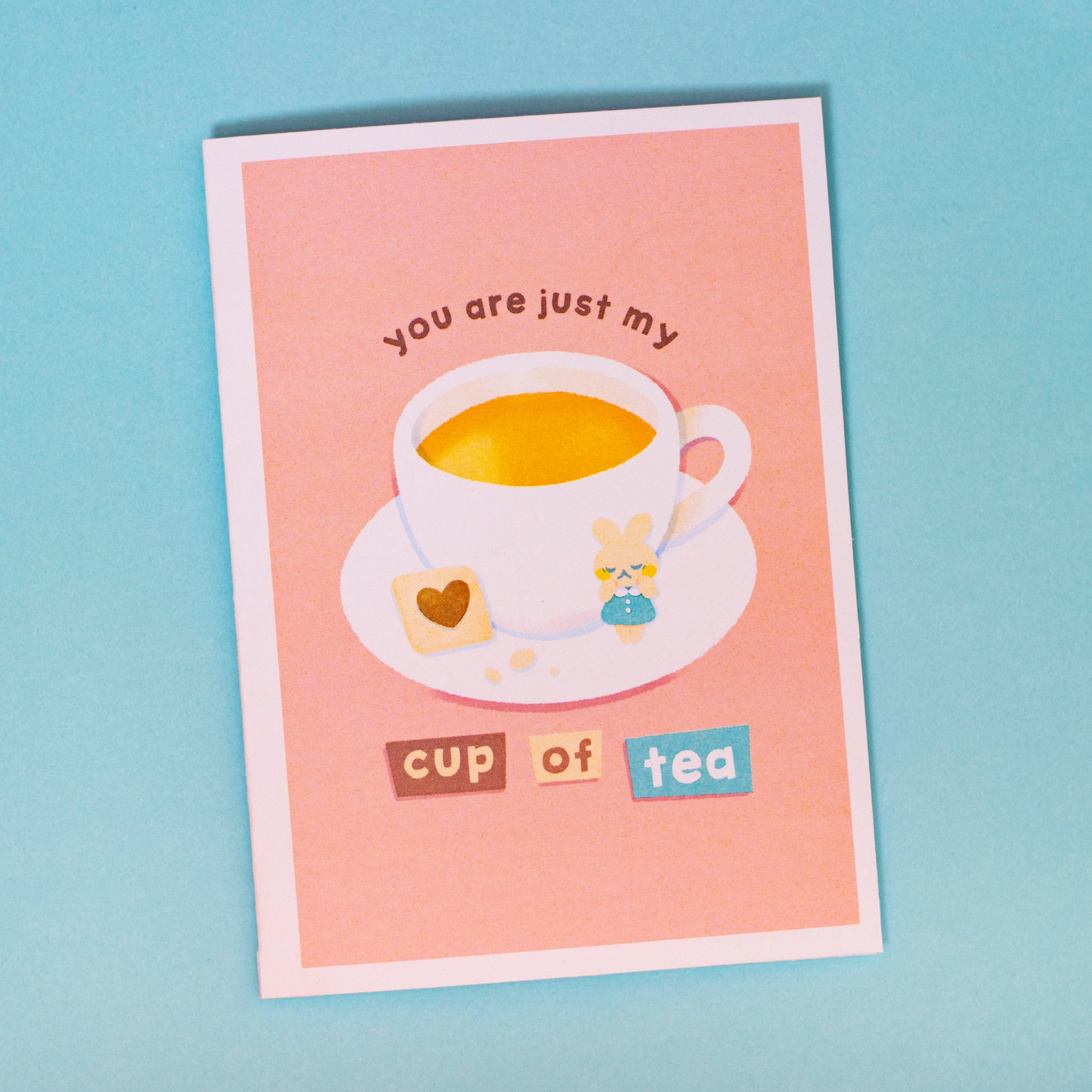 Show your affection for that special someone with this Worry Rabbit & tea-inspired greeting card.