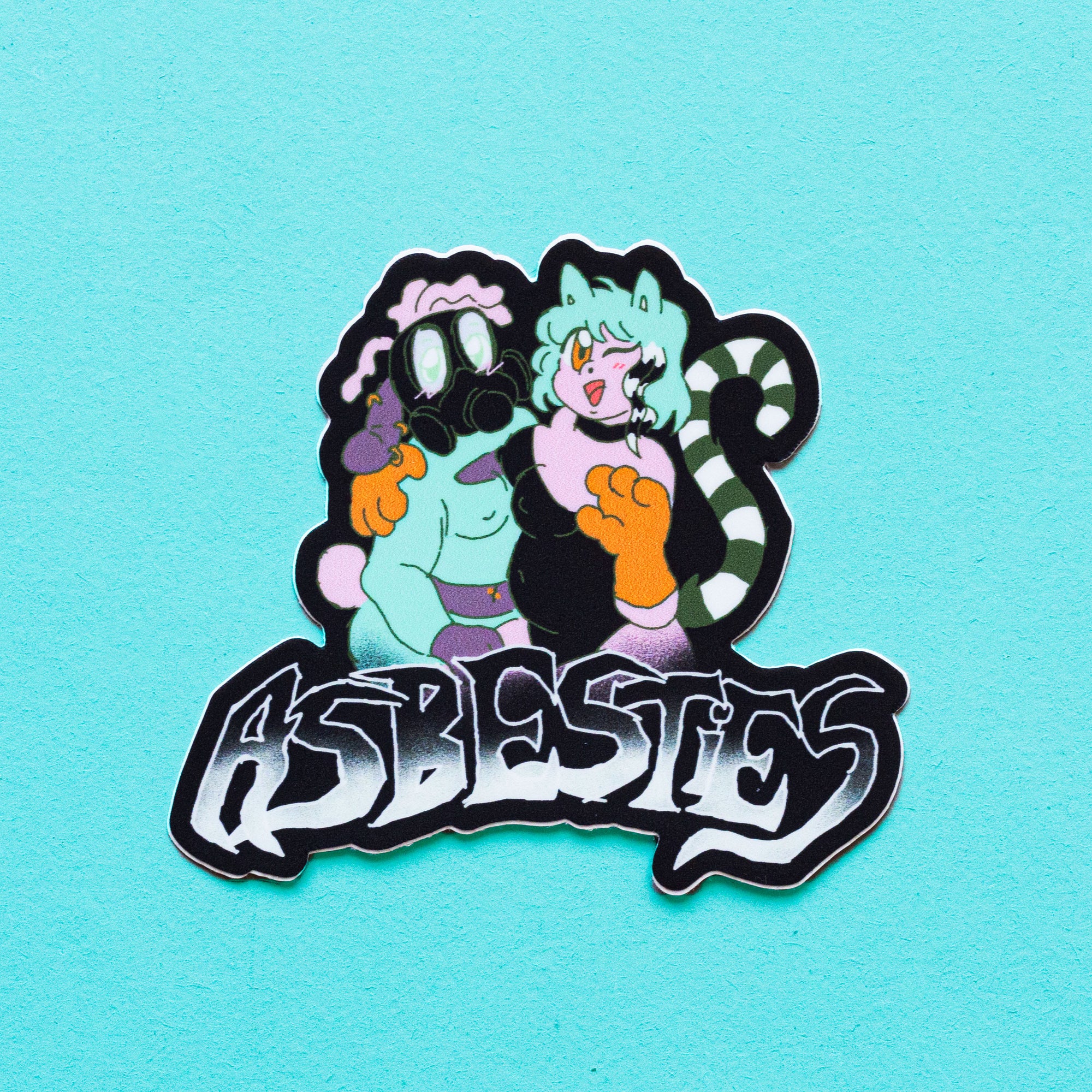 A coated matte sticker to adorn your journal, water bottle, skateboard, or asbestos-riddled home.