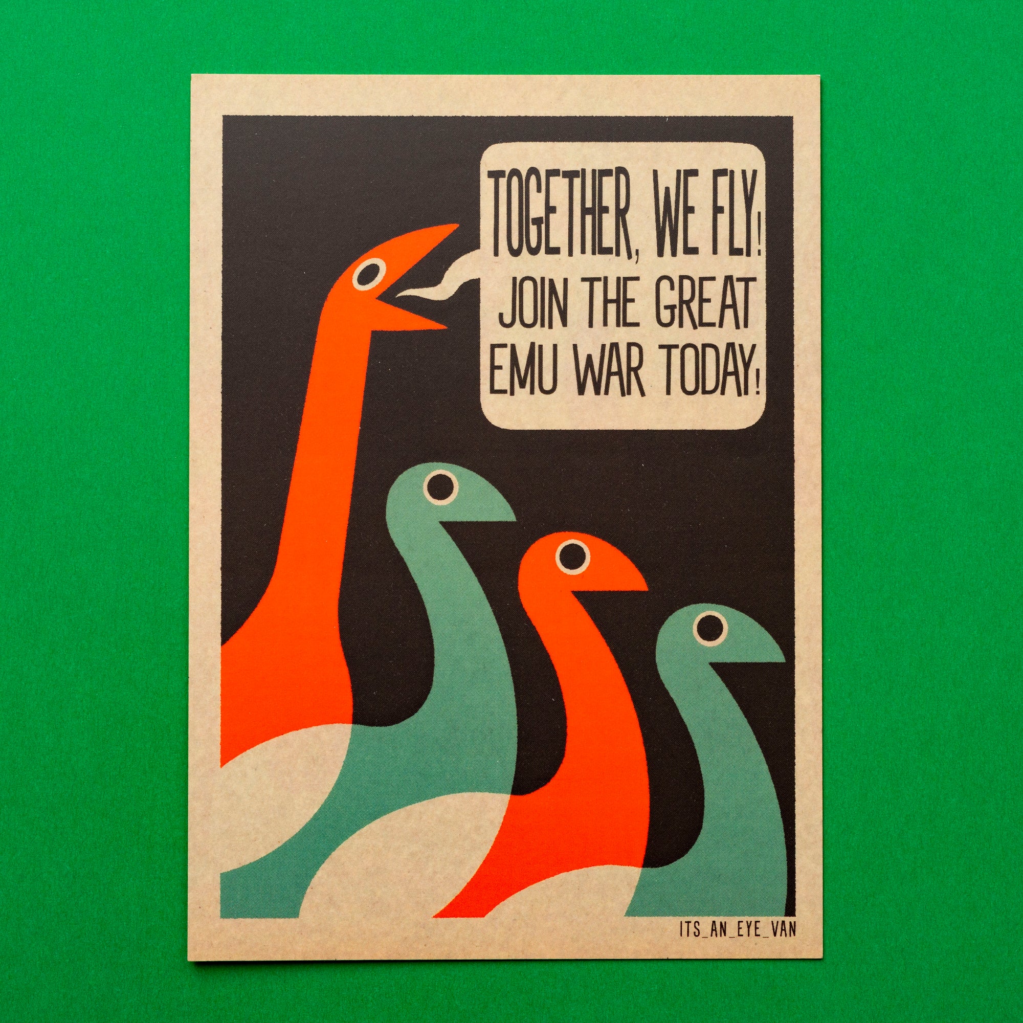 Birds of the feather must flock together!Show your allegiance to the Great Emu war with this commemerative postcard!