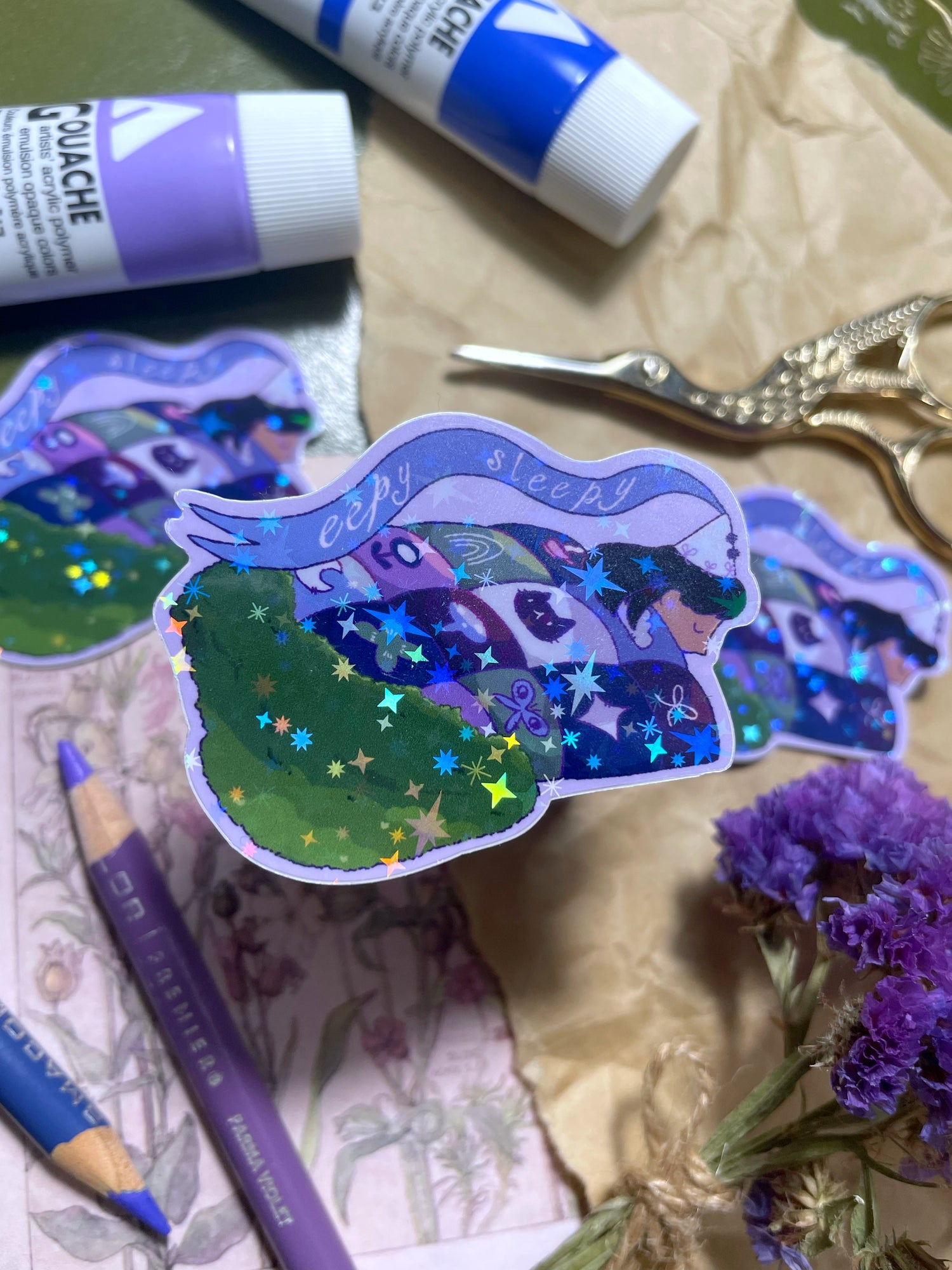 Where I'd rather be, printed on high quality vinyl with a sparkly holographic stardust finish. Water proof, UV resistant and dishwasher safe!