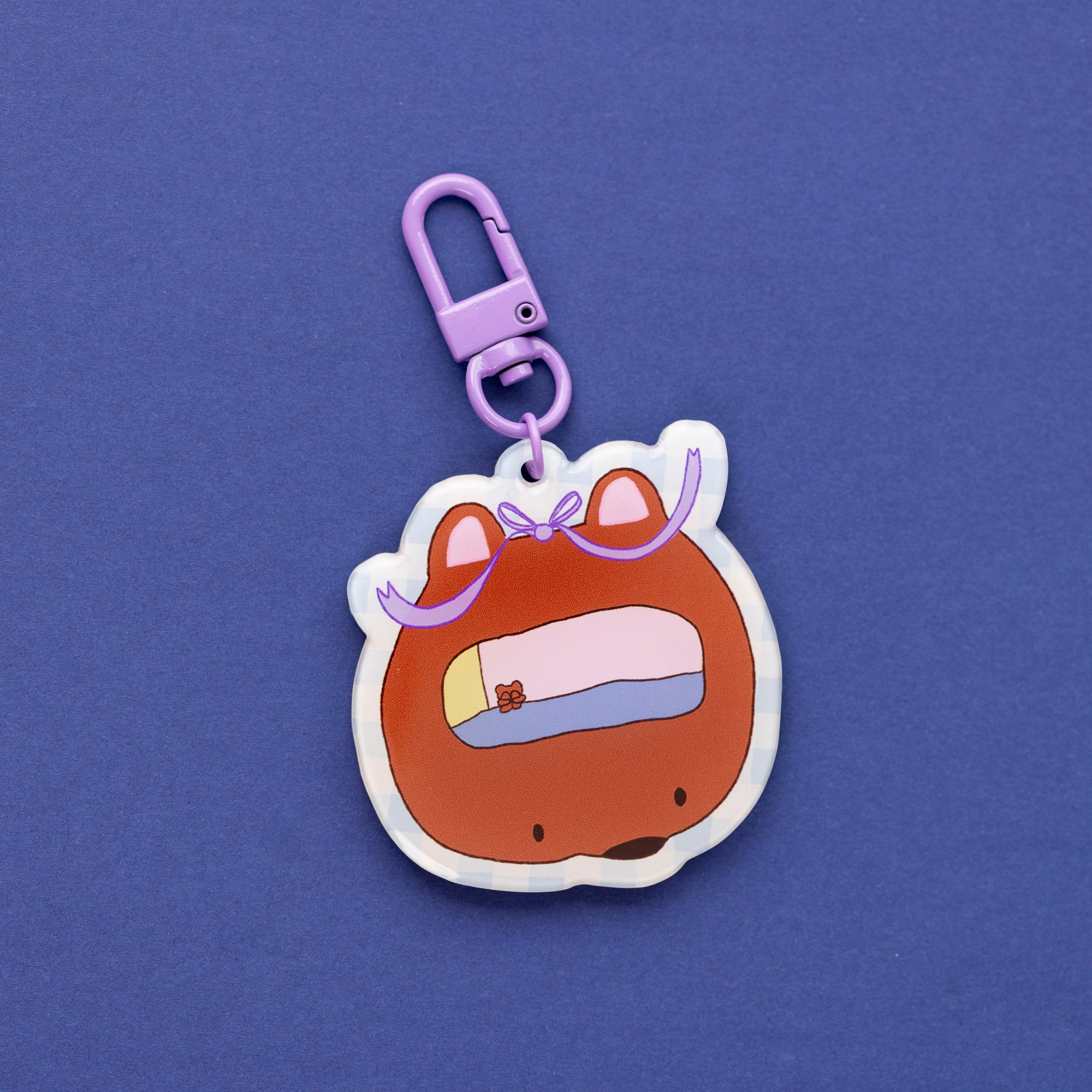 I have a sad tiny bear sitting in the corner of my brain...Double sided charm with epoxy over acrylic, comes with a blue clip.