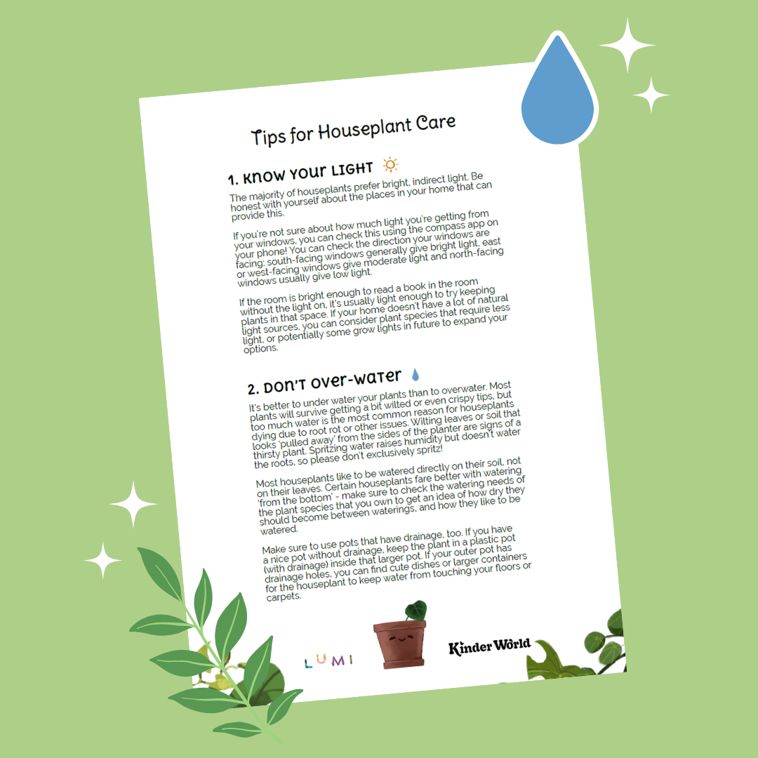 Growing houseplants in Kinder World is easy, but for some people, growing them IRL is a whole new challenge! These tips and trackers are the perfect tools to help you take care of your little green friends.