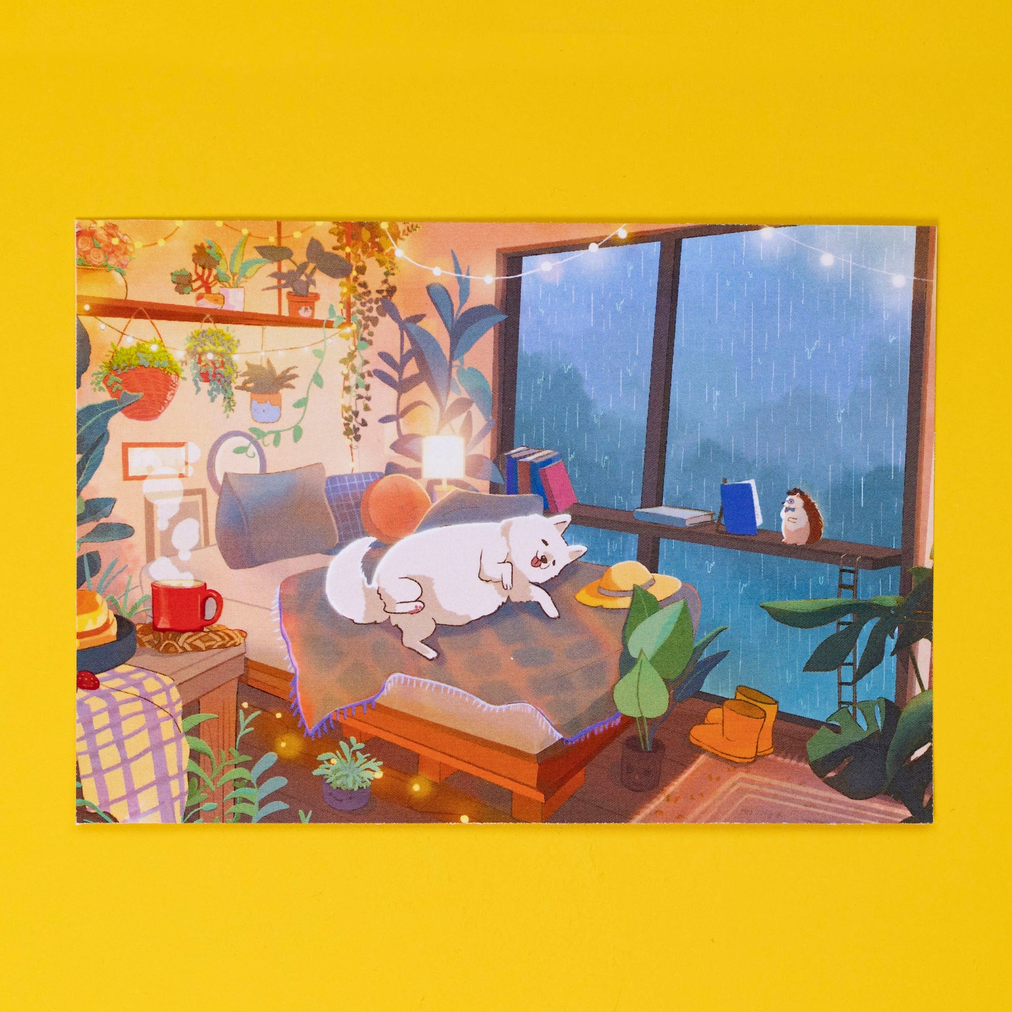 Kinder World collaboration artist Debbie Balboa perfectly captured the cozy vibe of a rainy afternoon in Kinder World.