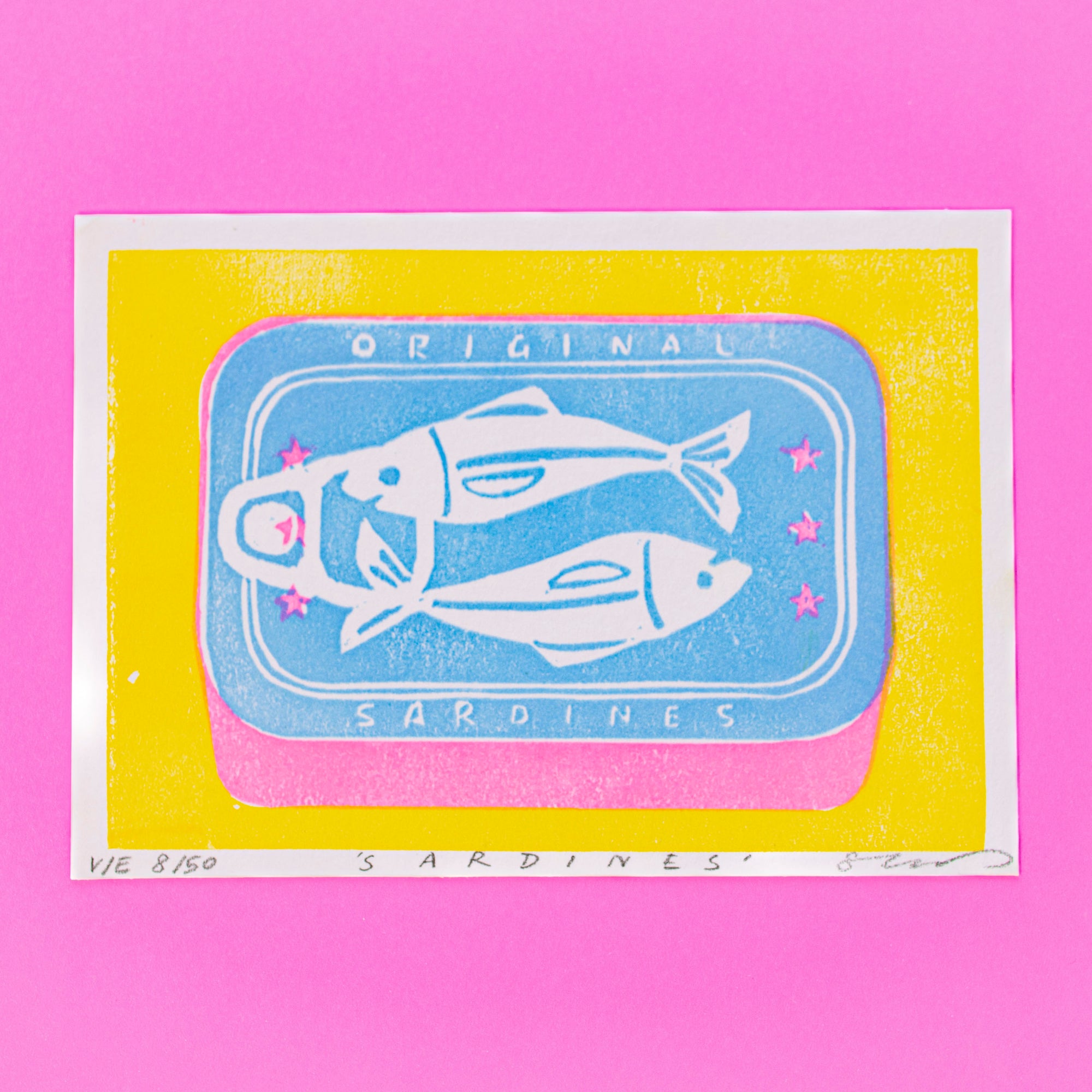 A signed limited edition fishy block print. Hand carved and hand printed.