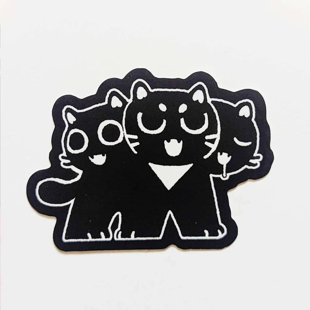 Is it one cat? Is it three? Good thing it only has one stomach and three mouths and not the other way around... the Kiki Cerebus will guardyour door three times better than cats with just one head.Vinyl stickers are approximately 6 x 8 cm.All vinyl stickers are:WaterproofSun proofDishwasher safeColours may vary depending on your monitor settings.
