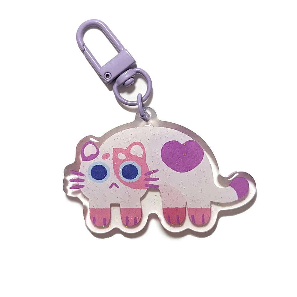 A cute pastel kitty cat with pink paws and a heart shaped spot.