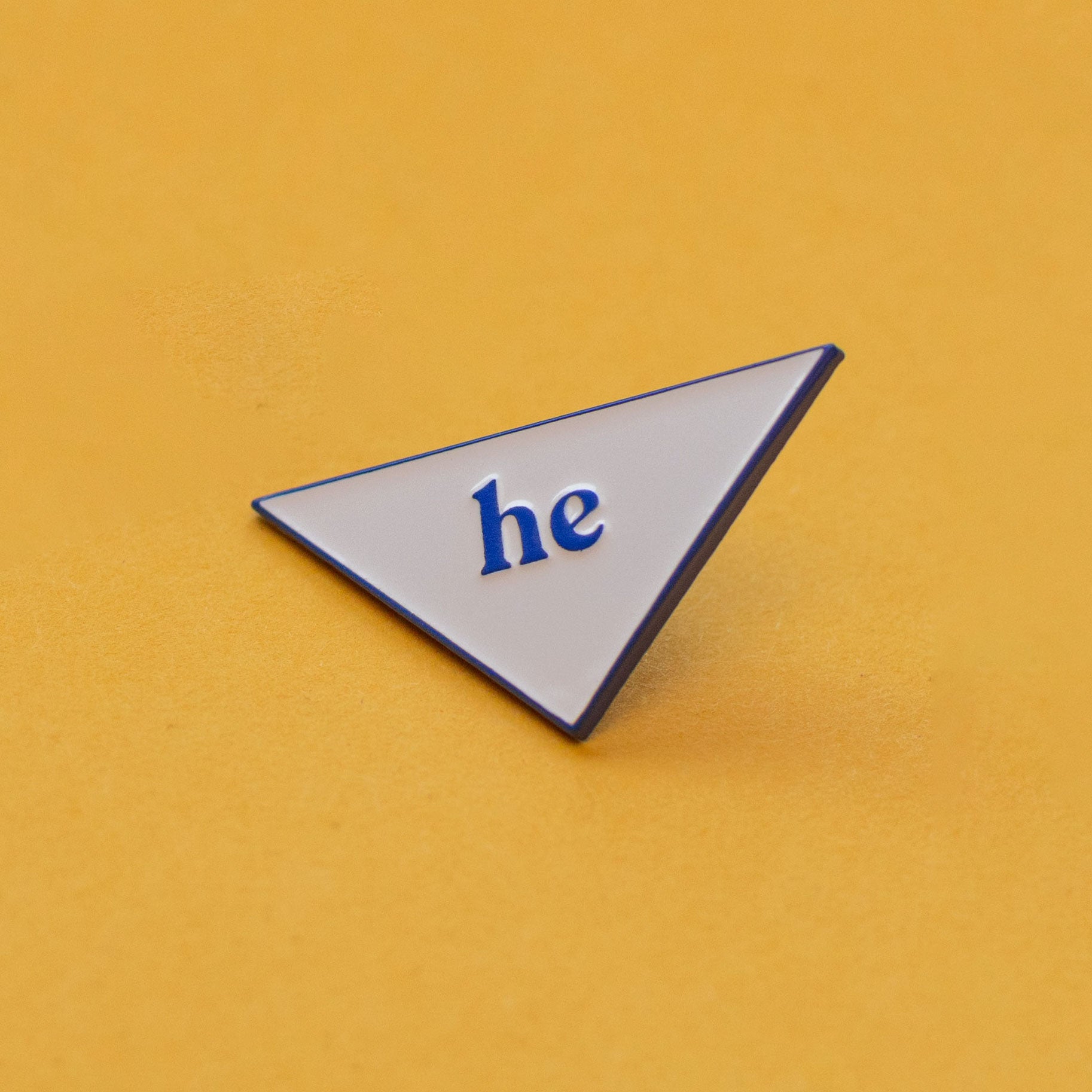 HE! Create your very own custom combination of pronoun pins! Made with Soft Enamel on Blue Coated Iron.