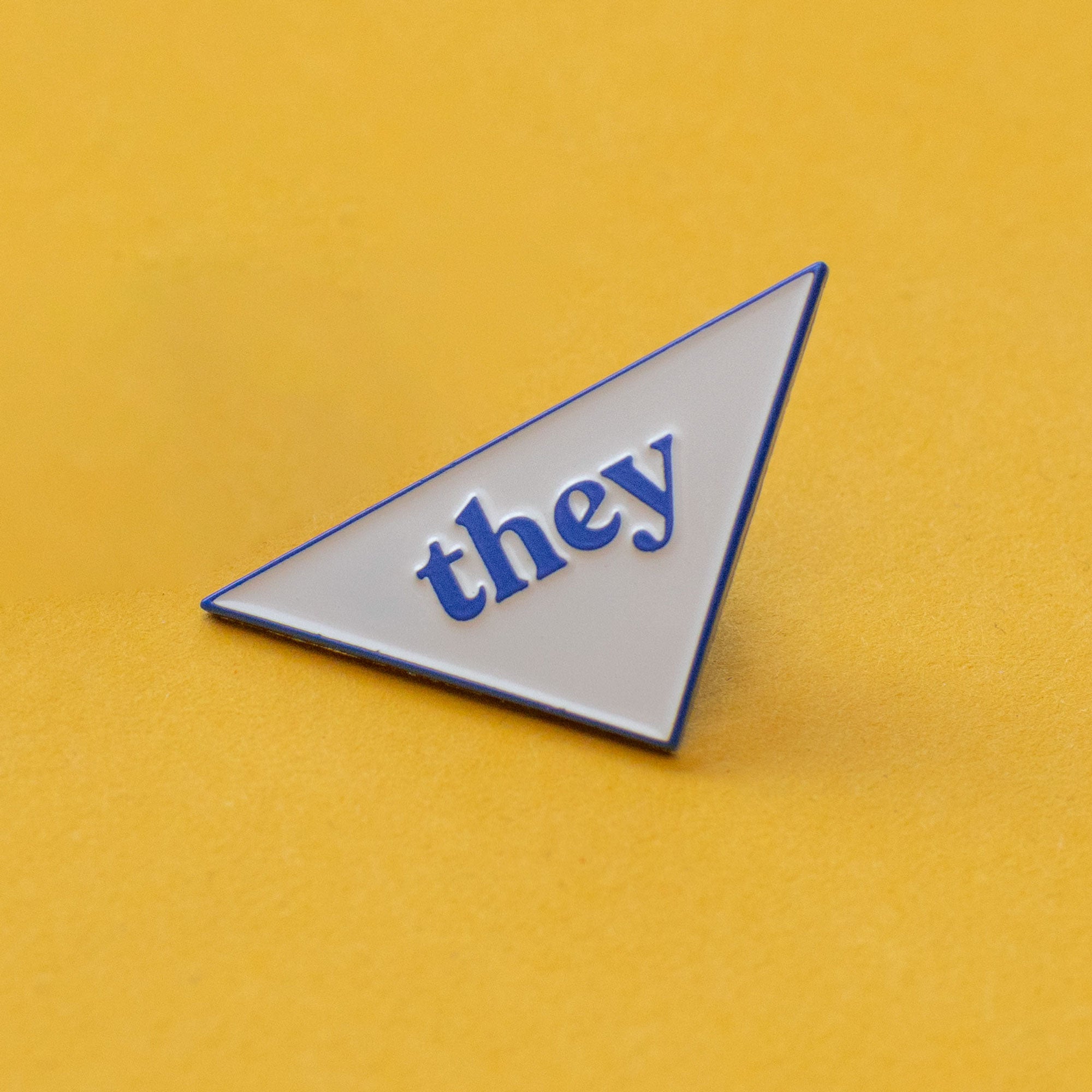 THEY! Create your very own custom combination of pronoun pins! Made with Soft Enamel on Blue Coated Iron.