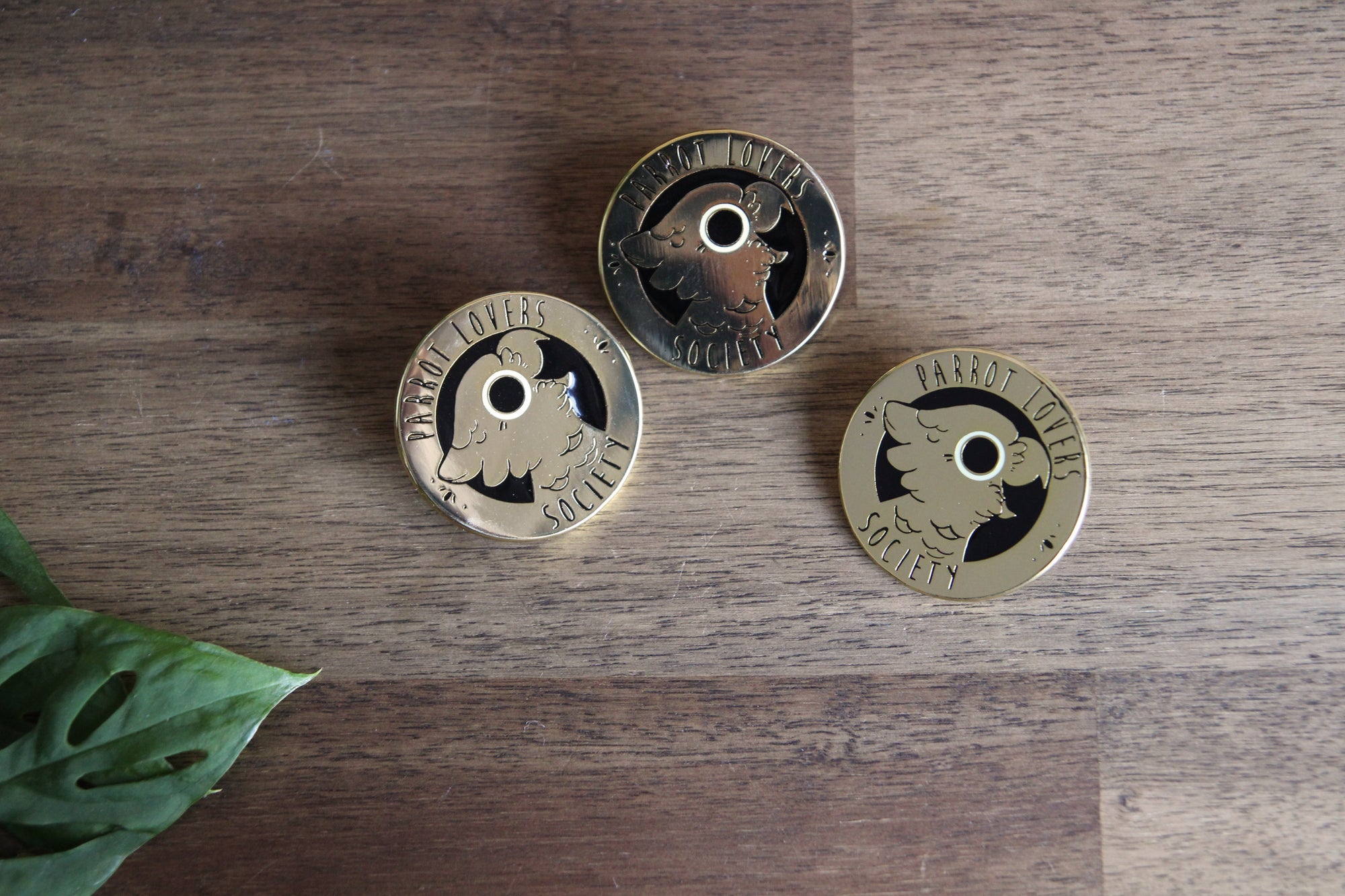 ARE YOU A PARROT LOVER? Do you absolutely adore parrots? Think about them every day? Why not show off your love and join our Parrot Lovers Society with this cute lapel pin! Featuring a cute stylized cockatoo with the words: " Parrot Lovers Society", this pin is perfect for your favourite hat, jacket, bag, shelf or anything else you can think of!