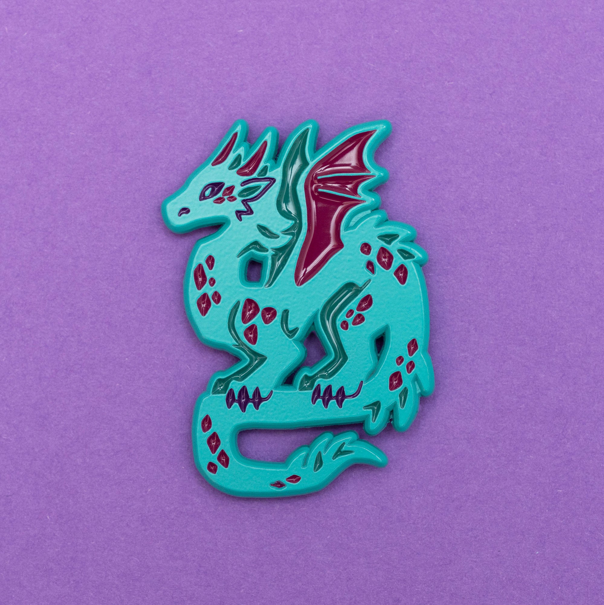 Show off your draconic side with this awesome teal dragon enamel pin. Crafted with vibrant coloured enamel, it's sure to add a touch of magic to any outfit! Go forth and shimmer like the dragon of your dreams! (But only if it's teal, of course.)