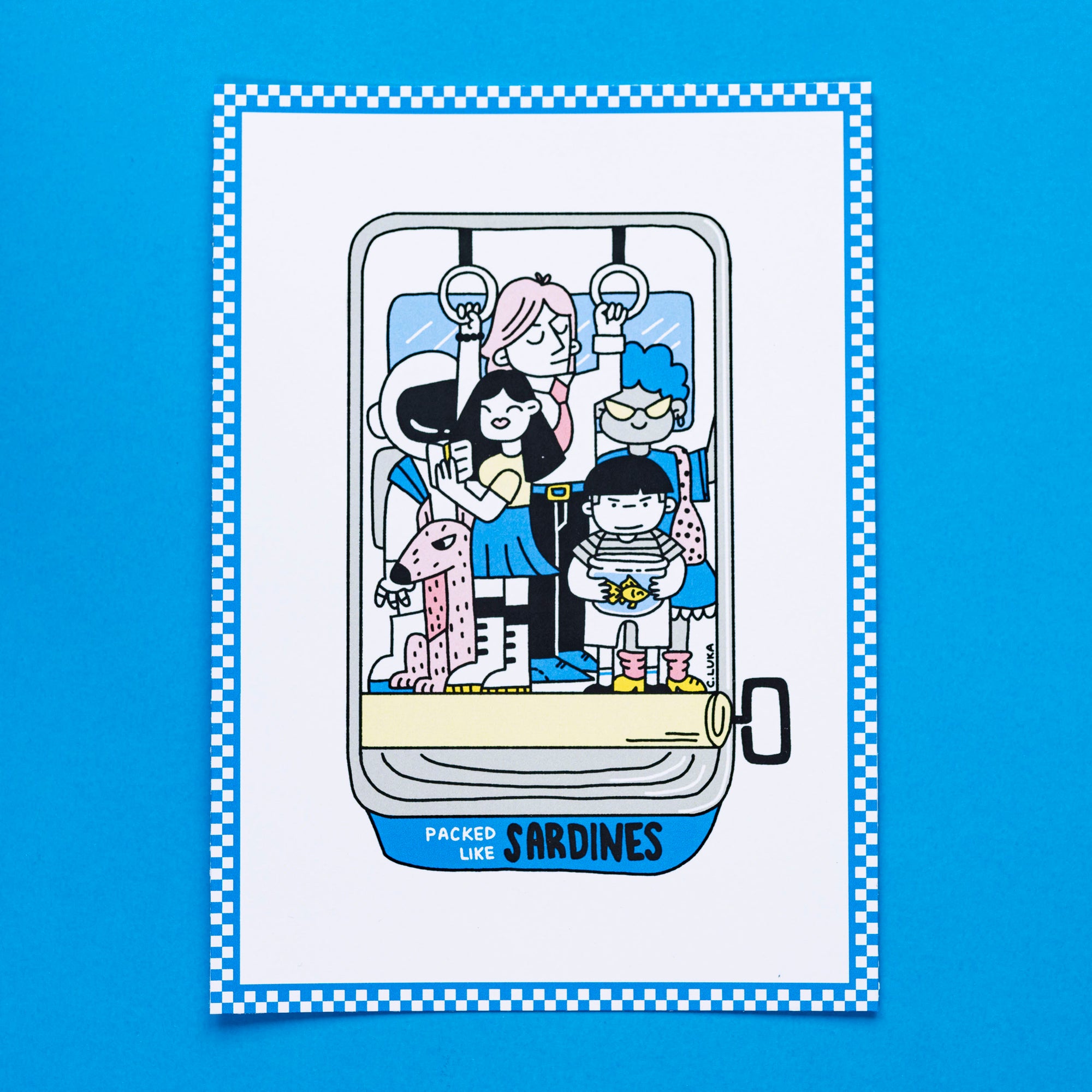 A print inspired by the idiom "packed like sardines." If you've been in a subway car at rush hour, you can relate! :)
