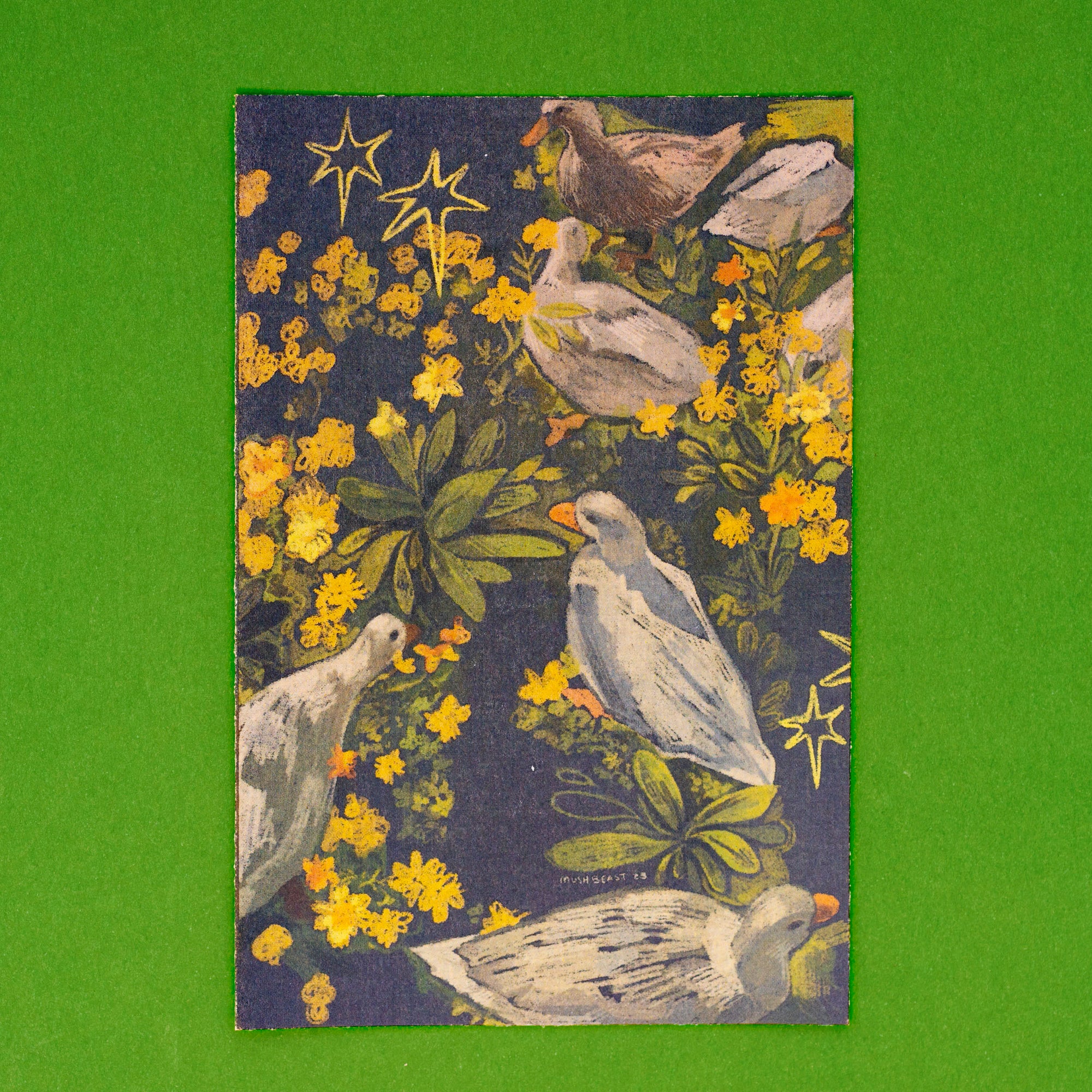 a crowd of ducks amongst a lush field. perfect for that small gap in your gallery wall.