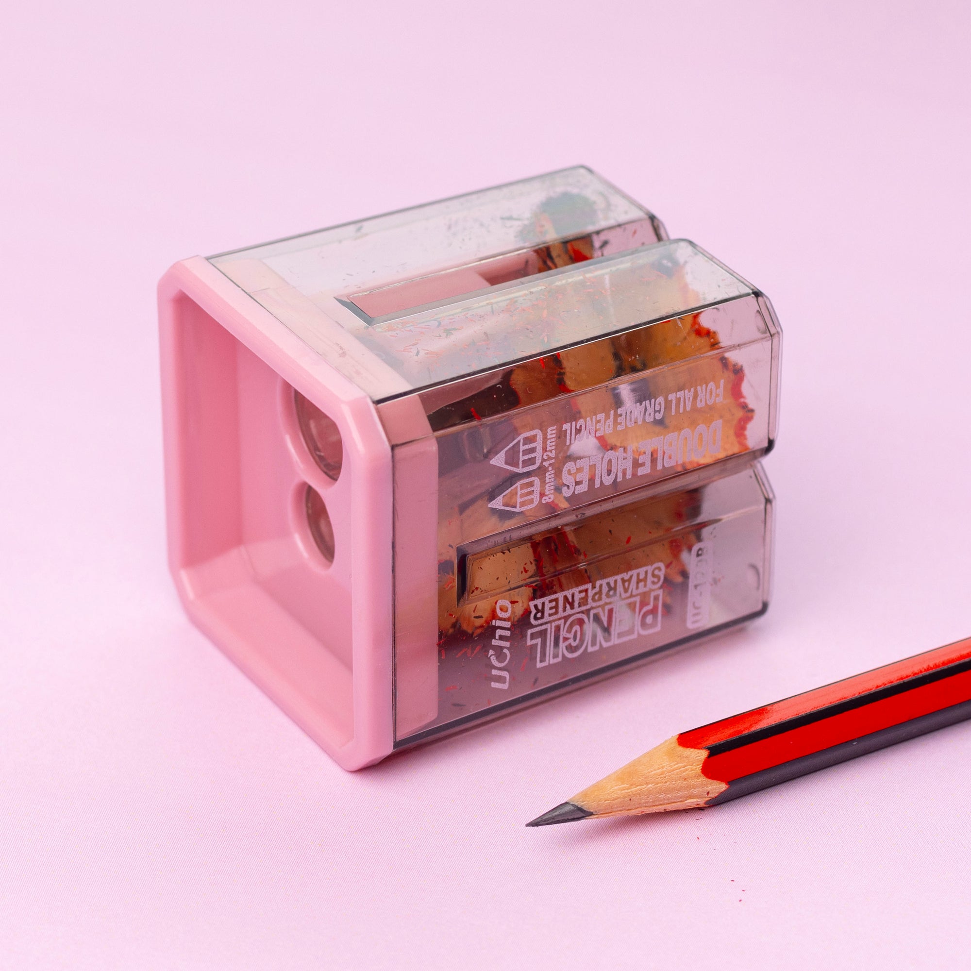 Compact and tidy! Keep your pencils sharp and your desk clear with this pocketable sharpener with a built in shavings container. Suitable for standard size 7mm and larger size 9mm pencils. Seconds: Please note due to the material of these sharpeners, there may be small cosmetic scuffs visible on the outside, however the sharpeners are brand new and completely working.