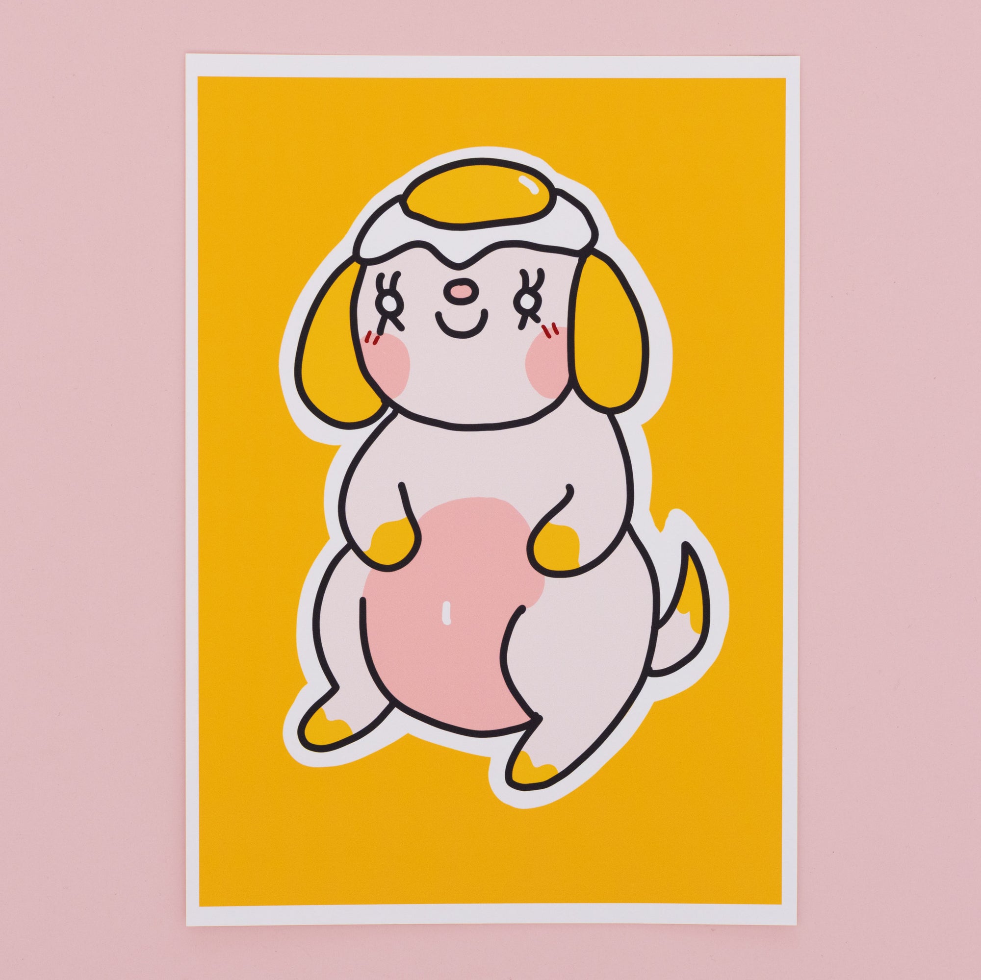 Eggdog, little eggdog. Sunny side up! // Unframed a5 fine art print - printed in Melbourne using a Canon Pixma iP8760 on Epson Matte Archival Paper 189gsm. Please note colours on screen may vary slightly from the final printed artwork.