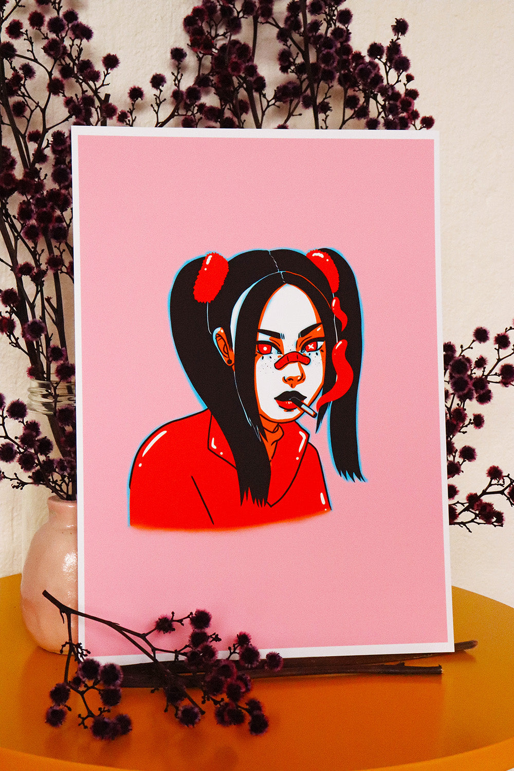Moody girl smokes orange bubbles. // Unframed a4 fine art print - printed in Melbourne using a Canon Pixma iP8760 on Epson Matte Archival Paper 189gsm. Please note colours on screen may vary slightly from the final printed artwork.