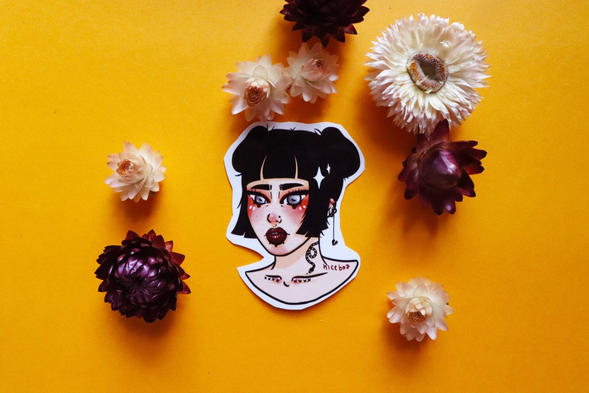The girl with the snake tattoo. Printed in Melbourne on glossy vinyl sticker paper using a Canon Pixma iP8760 and handcut.