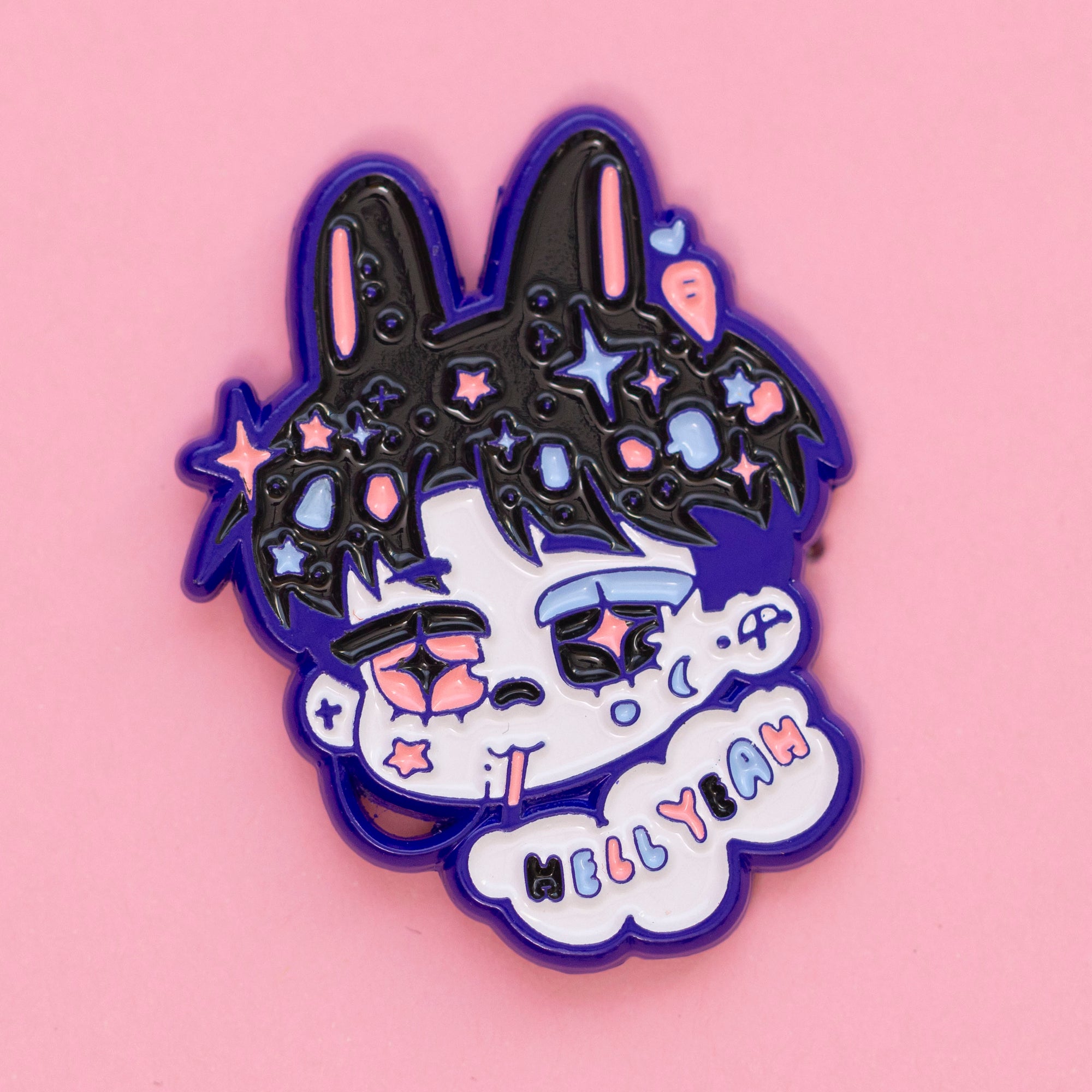 Hell yeah !!! A soft enamel pin with purple plating and pastel accents.