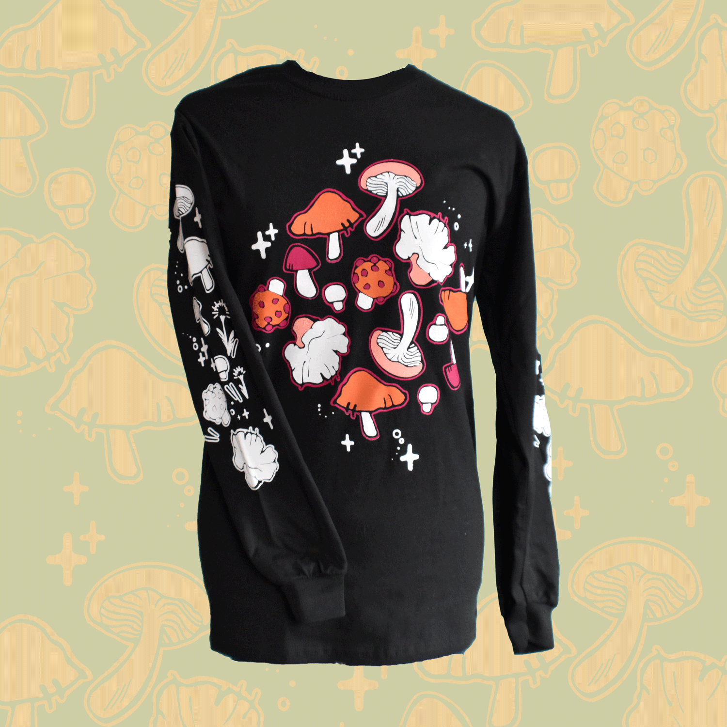 Show off how much of a fungi you are with this screen printed design on Gildan long-sleeve crew necks.