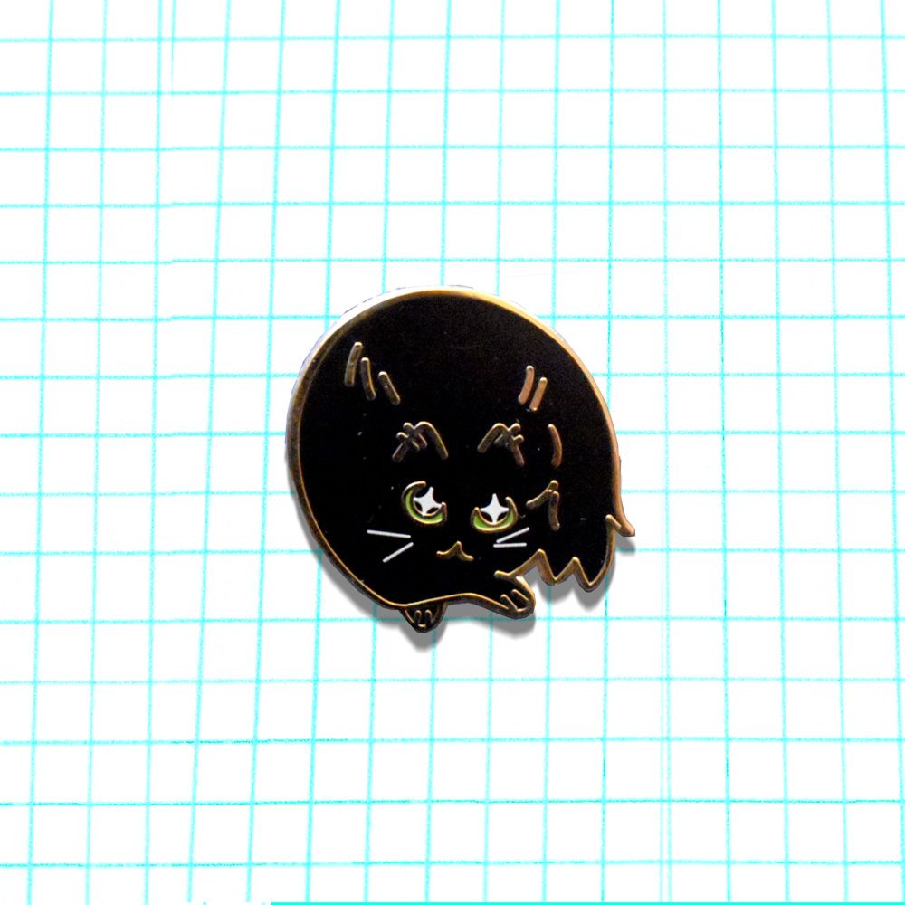 Just look at that little cat! They've never done anything wrong in their life. Not once. These 1.25" pins feature two stud backings and glow in the dark eyes (all the better to watch you get a midnight snack with).