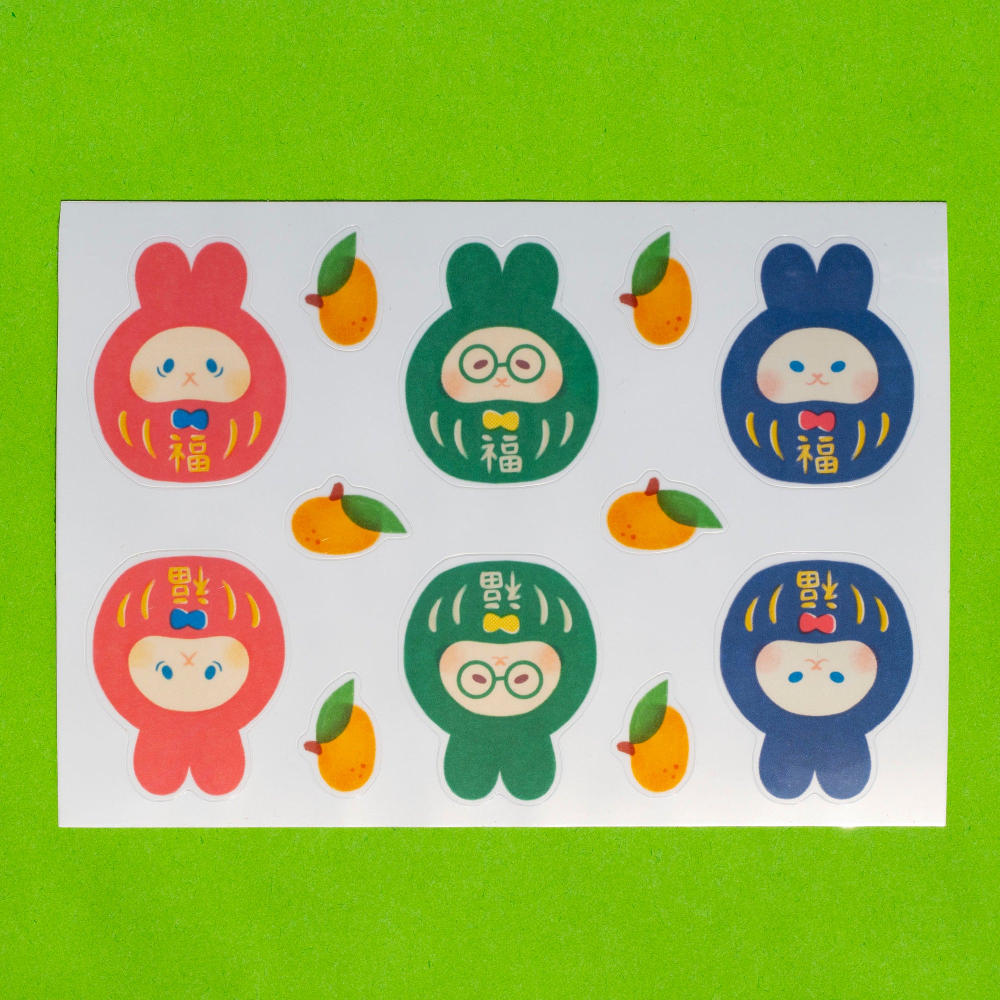 Lucky bunny dolls to help you reach your goals in the new year! An original sticker sheet for Mushroomy.