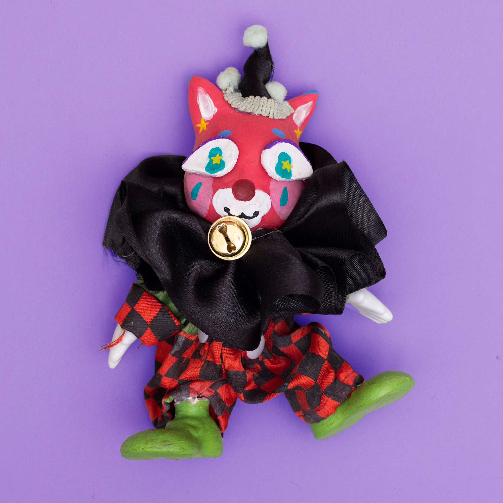 A happy magenta cat friend who goes to clown school! They're so excited to dance and perform and make you laugh! They have fully poseable limbs. More information on their make and care can be found here:https://refurbishfriends.carrd.co/
