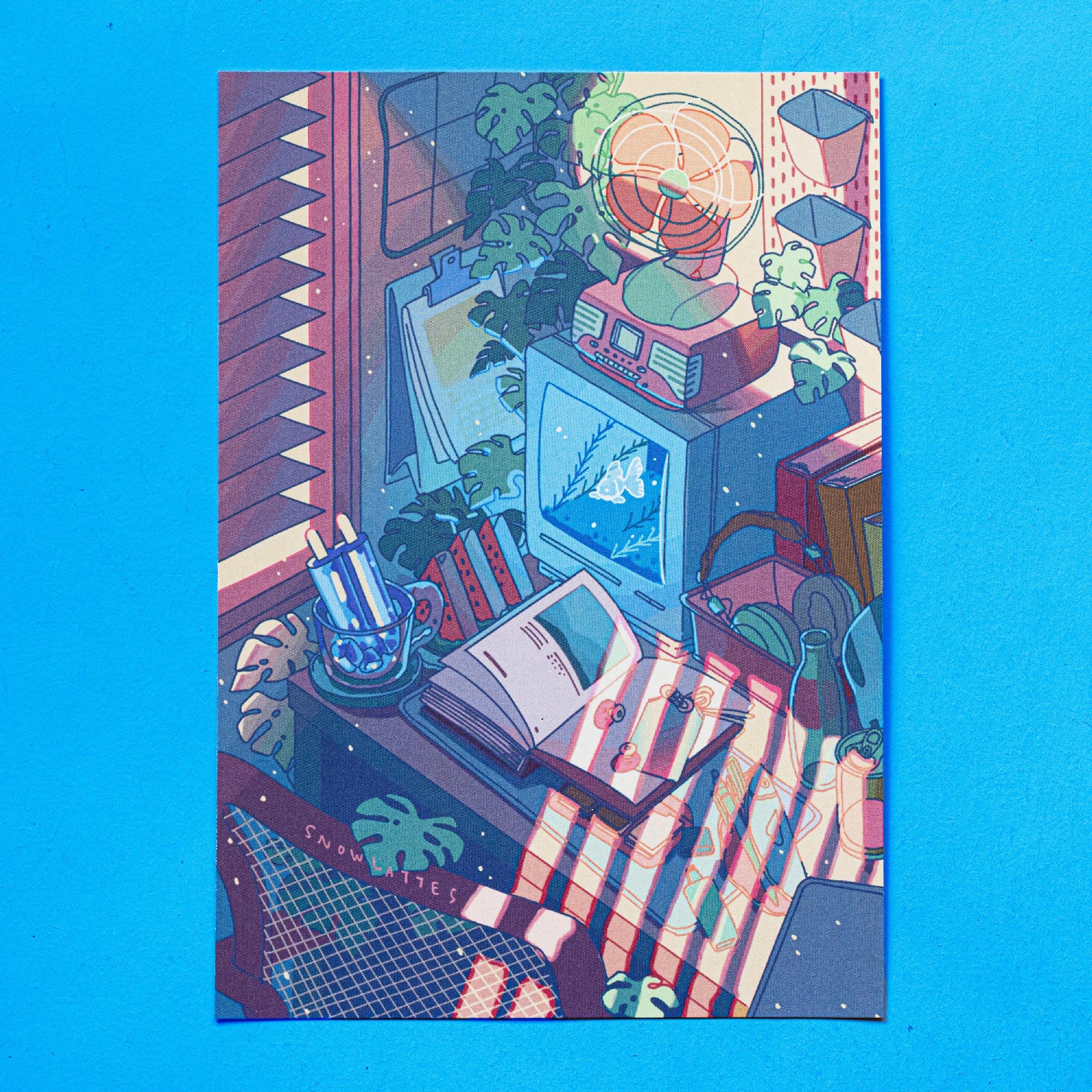 Cool down and soak in your tub in the summer heat! But of course not without your favorite fizzy drinks and an ice cream, don't you think?Adding on to the many Snowlattes summer illustrations lineup with Confined Chilled Heat print to decorate your room!