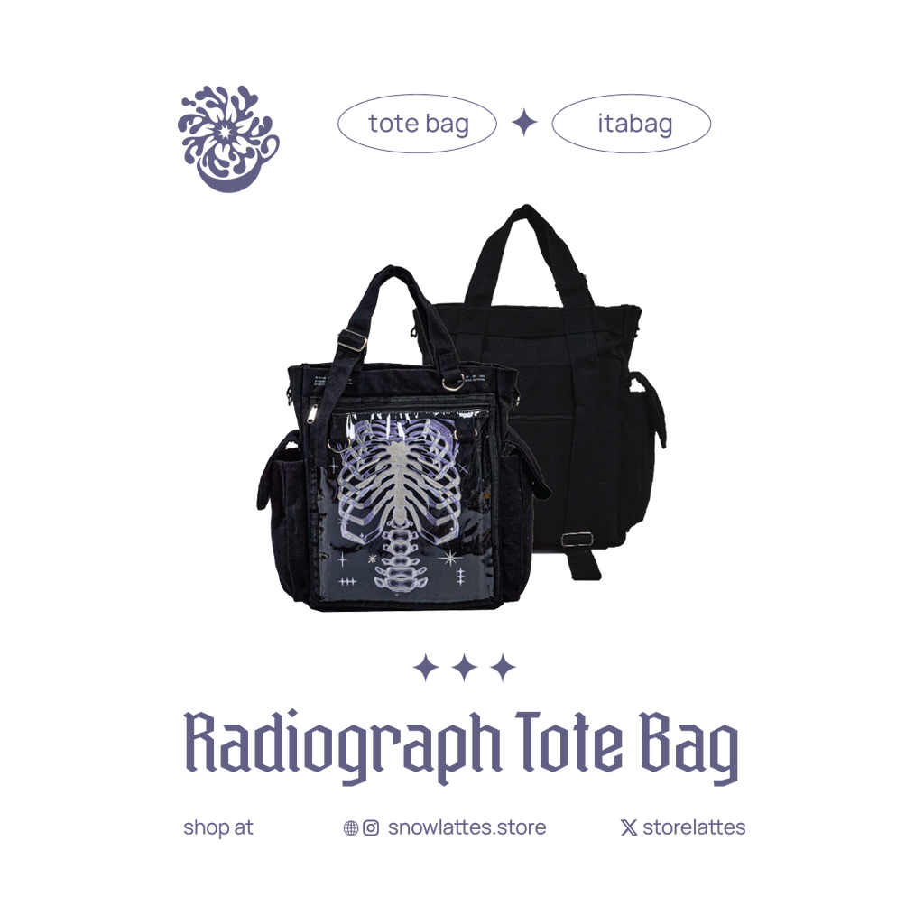 The Radiograph Two-way Bag is available in one color and is made of Canvas fabric. The bag is 40x30x10cm in size. Please make sure to check our Size Guide on the site.