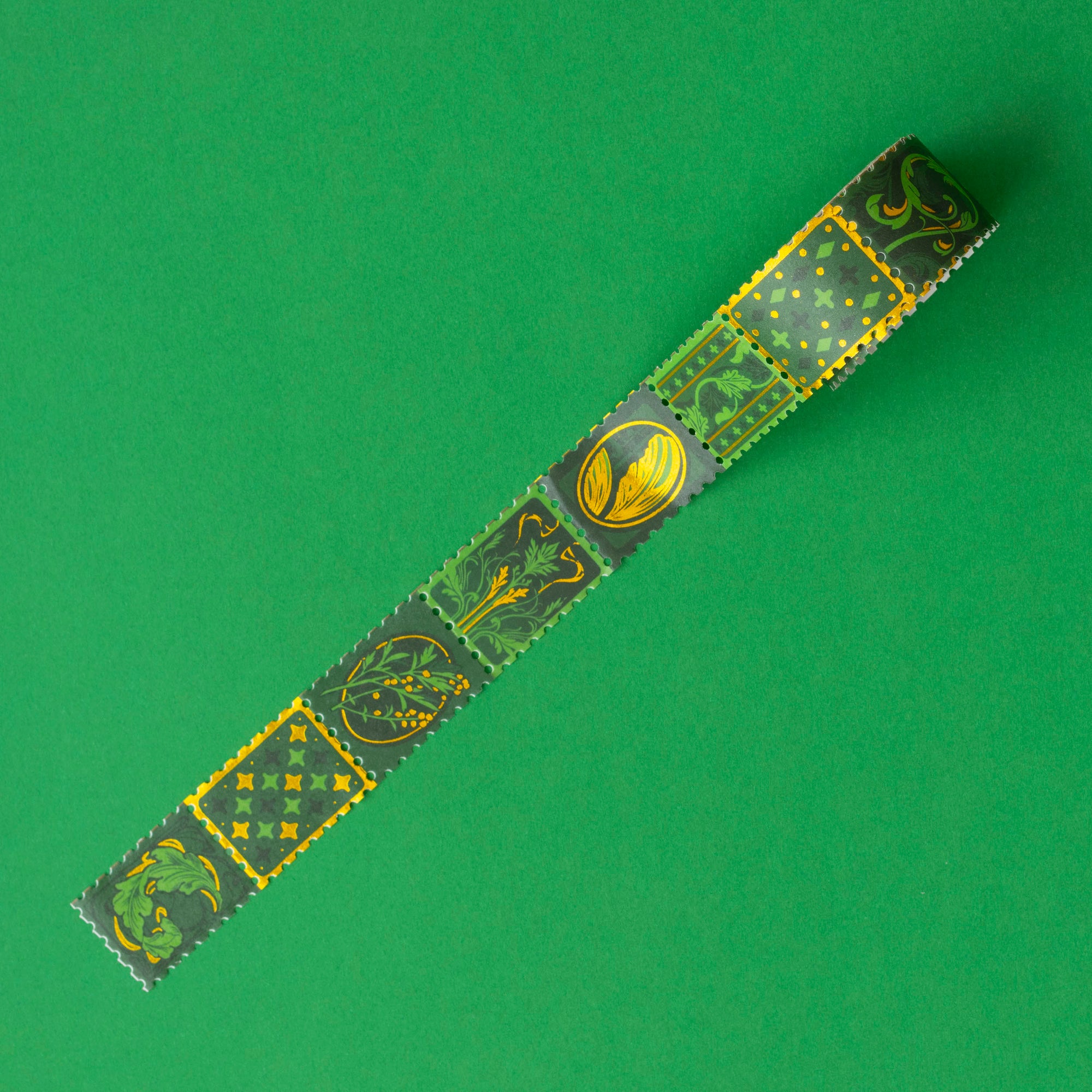 Stamp washi tape featuring an absinthe-inspired design! 24 x 35 mm per stamp / 5 m total lengthOn quick-release paper to protect foil.