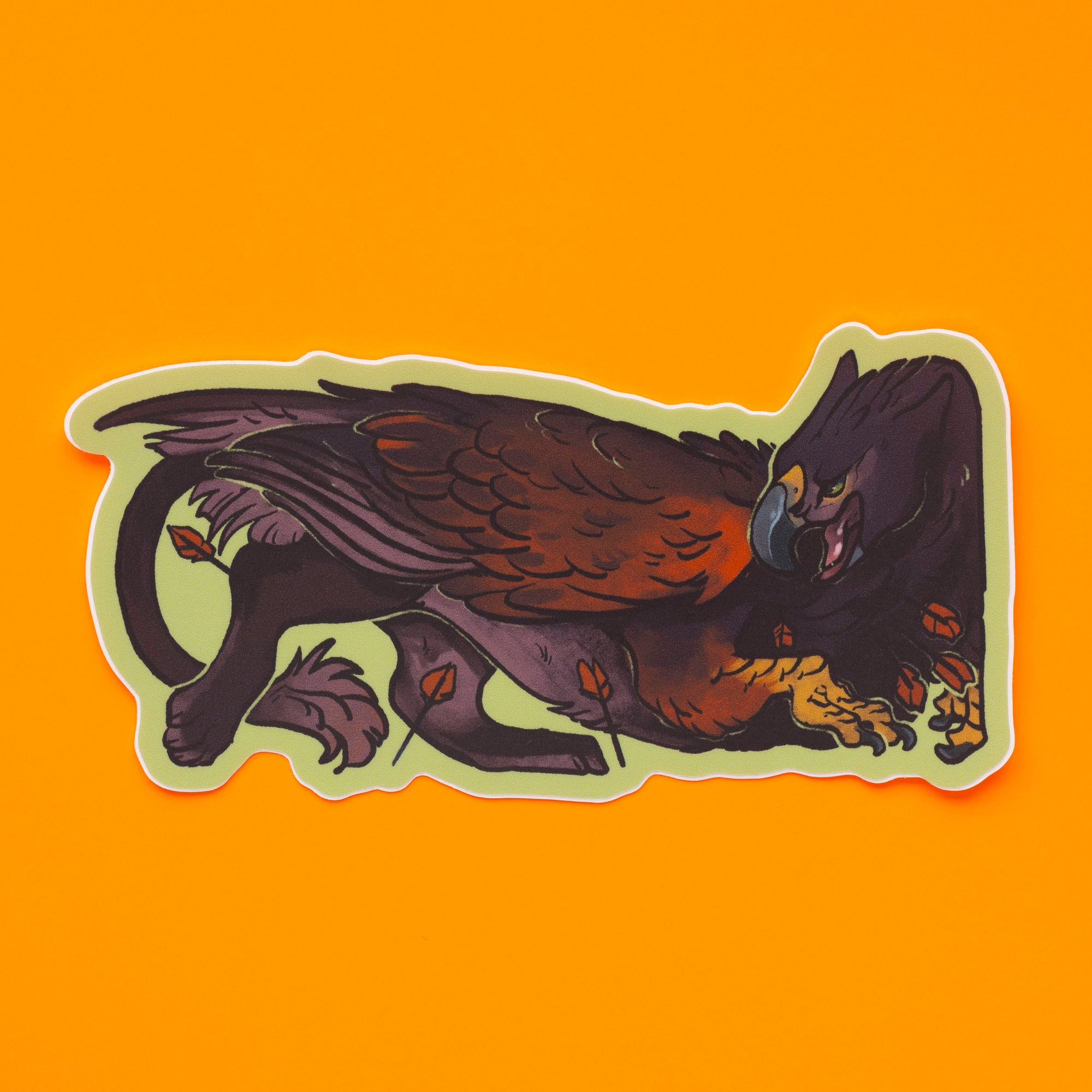 A medieval classic, this large sticker bears resemblance to a hawk-like Gryphon!This durable vinyl sticker is great for cars, water bottles, laptops, your fridge if you're feeling it, or the bowl you keep your fruit in.