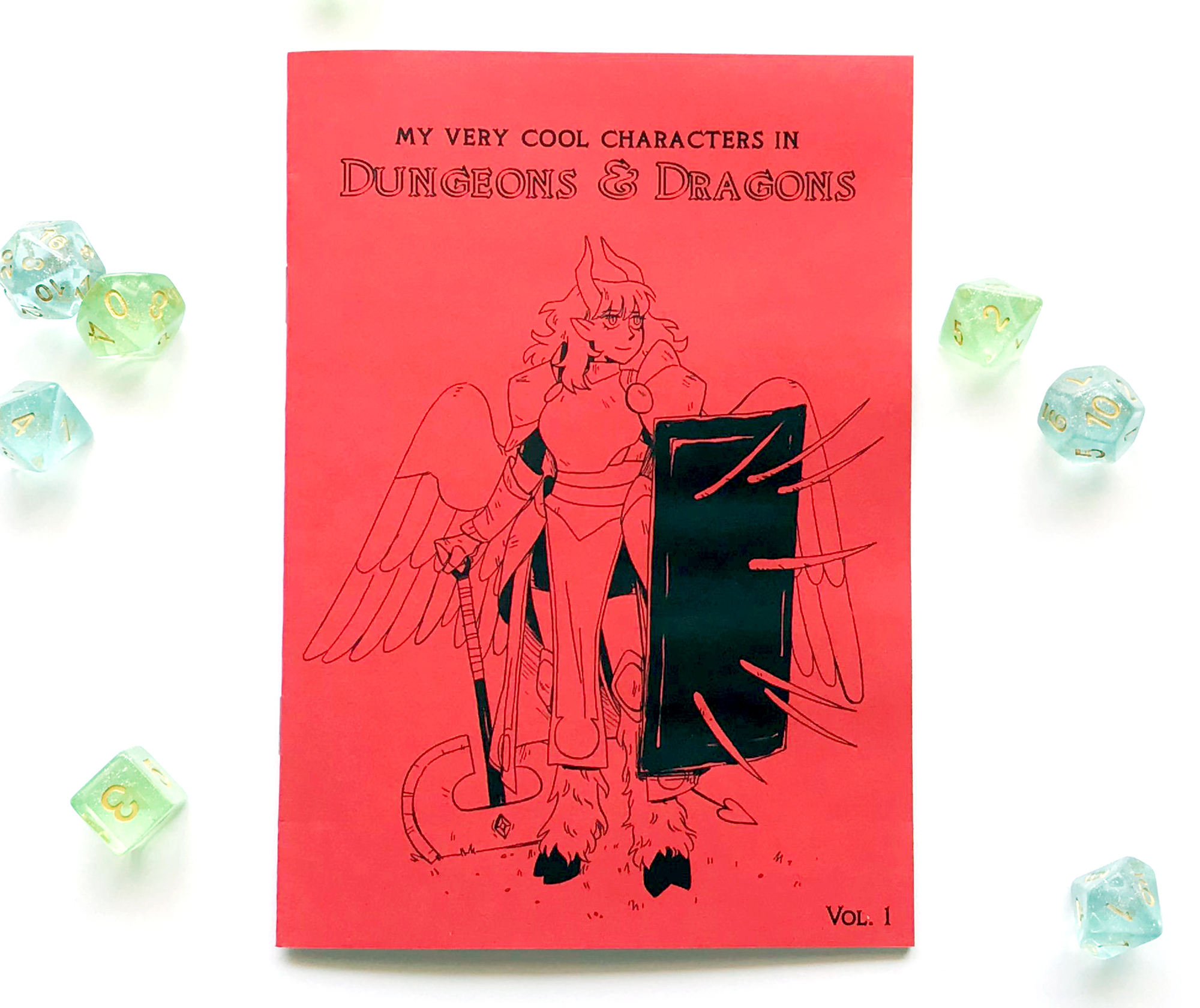 A black and white 13-page zine about two of Jennifer's Dungeons and Dragons characters! It features two comic pages, four line-art illustrations, and some writing about their stories, stats, and playlists.