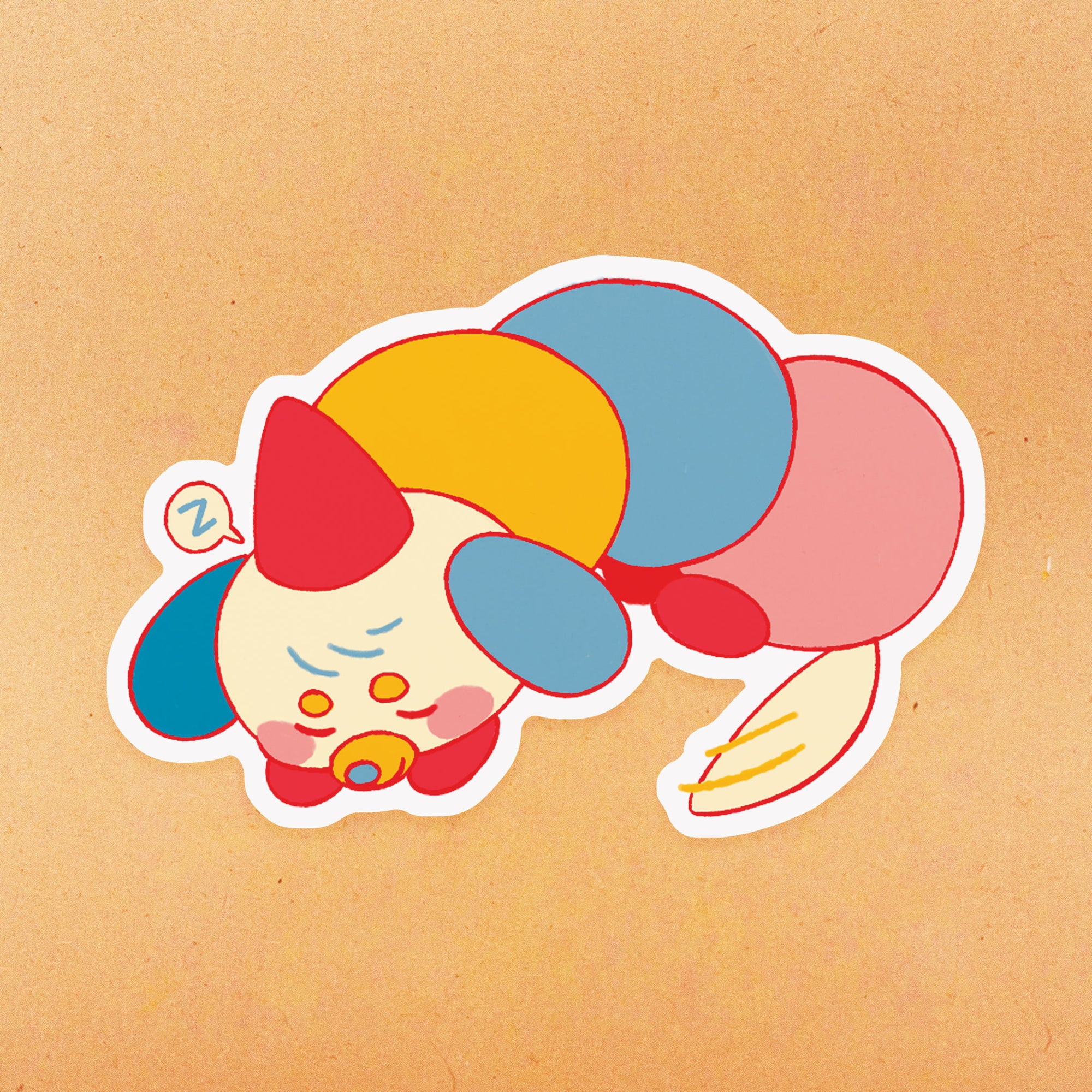 The adorable PupperPillar, perfect addition to any dog or bug lover's collection! This high-quality vinyl sticker features an sleepy pup transformed into a colorful caterpillar, complete with a funny hat and a smile.