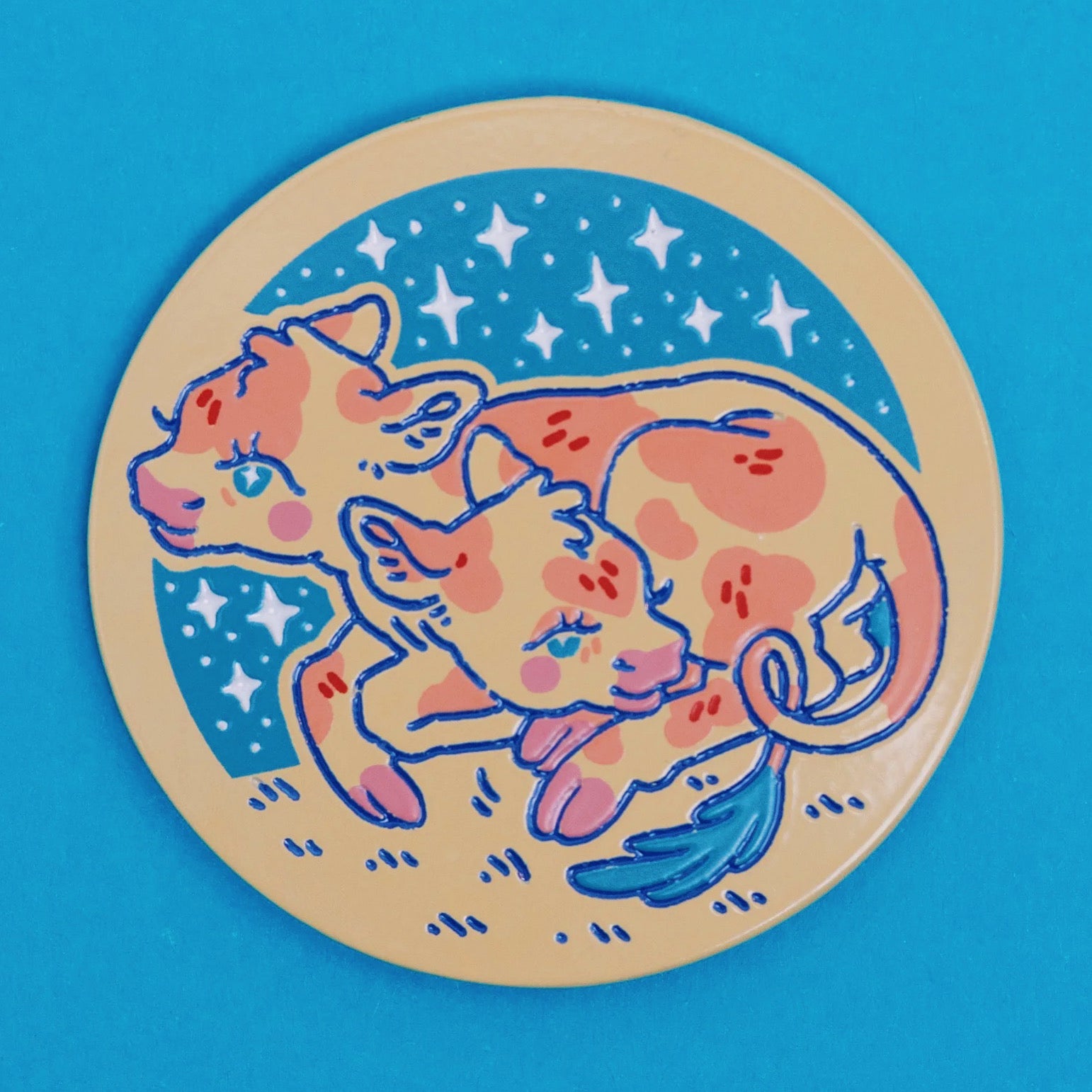 An original enamel pin featuring the tattoo flash art of Taurus Teej!