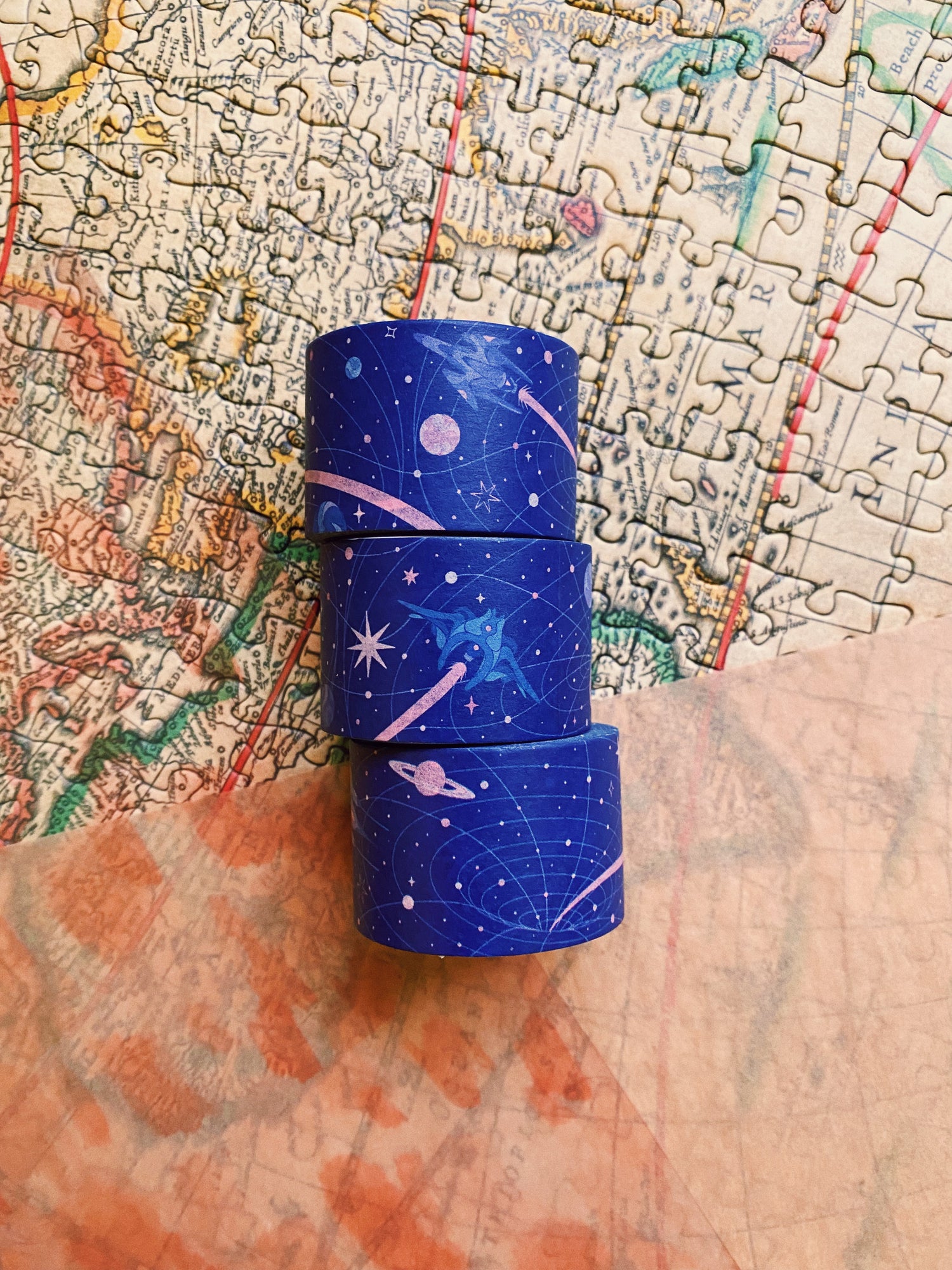 Printed paper tape, perfect for any time you’d use regular tape, only cuter! Hang up artwork, use it in planners, journals, or for sealing and decorating mail. Easily peels off and leaves minimal residue on most surfaces. A perfect gift for the stationery lover in your life - or you!