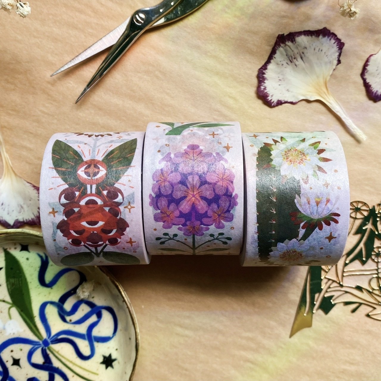 Printed paper tape, perfect for any time you’d use regular tape, only cuter! Use it in planners, journals, scrapbooks, or for sealing and decorating mail. Easily peels off and leaves minimal residue on most surfaces. A perfect gift for the stationery lover in your life - or you!