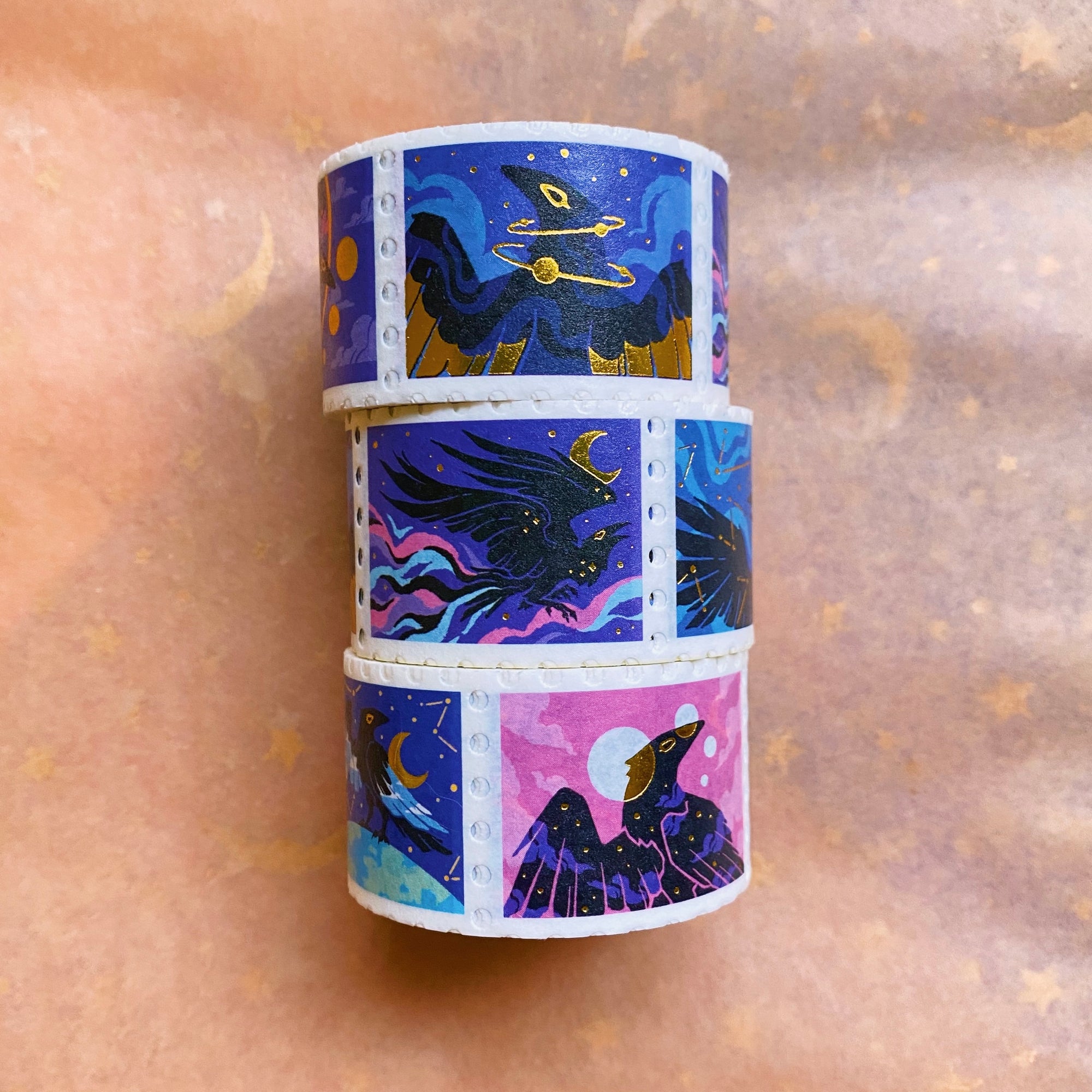 Printed paper tape with perforation for easy tear or cut guide, featuring seven unique stamp designs. Can be used individually or in a line in planners, journals, or for sealing and decorating mail. Easily peels off and leaves minimal residue on most surfaces. A perfect holiday or year-round gift for the stationery and snail mail lover in your life - or you!