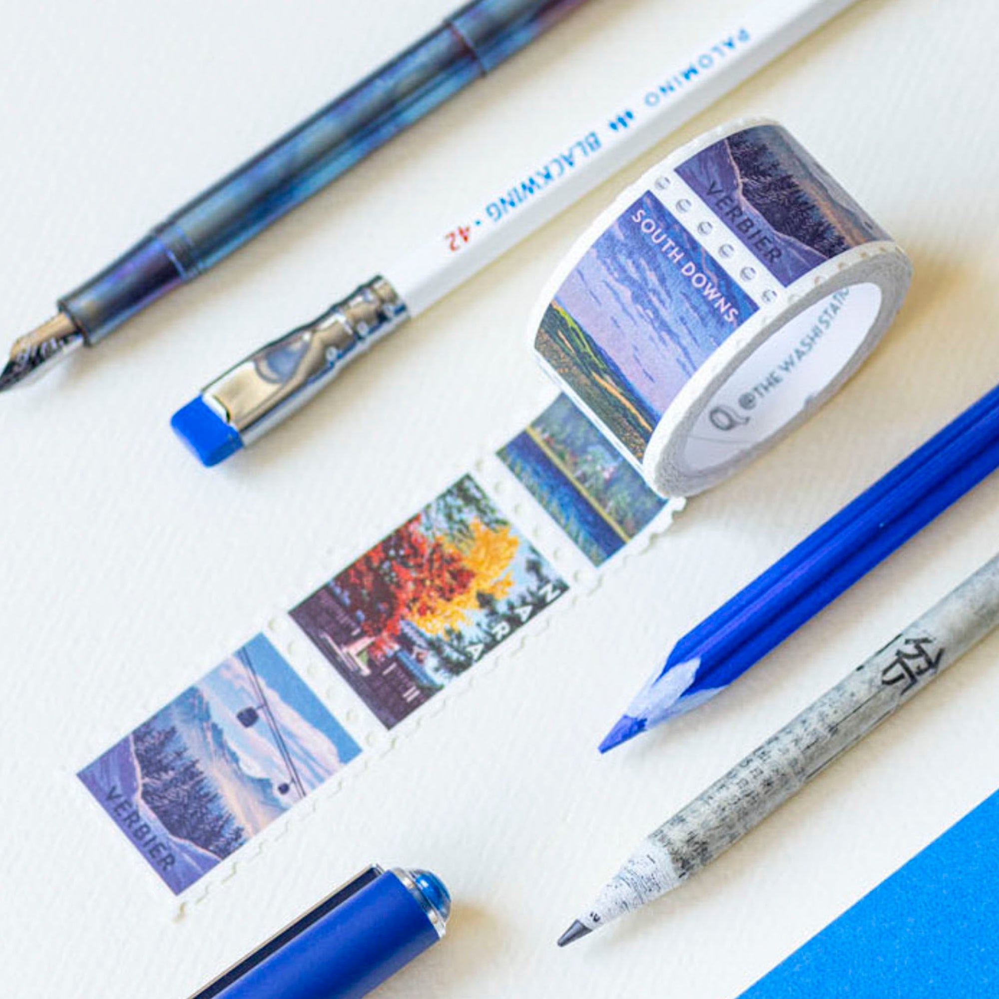 Printed paper tape with perforation for easy tear or cut guide. Features 6 unique travel landscapes. Can be used individually or in a line in planners, journals, or for sealing and decorating mail. Easily peels off and leaves minimal residue on most surfaces. A perfect gift for the stationery and snail mail lover in your life - or you!