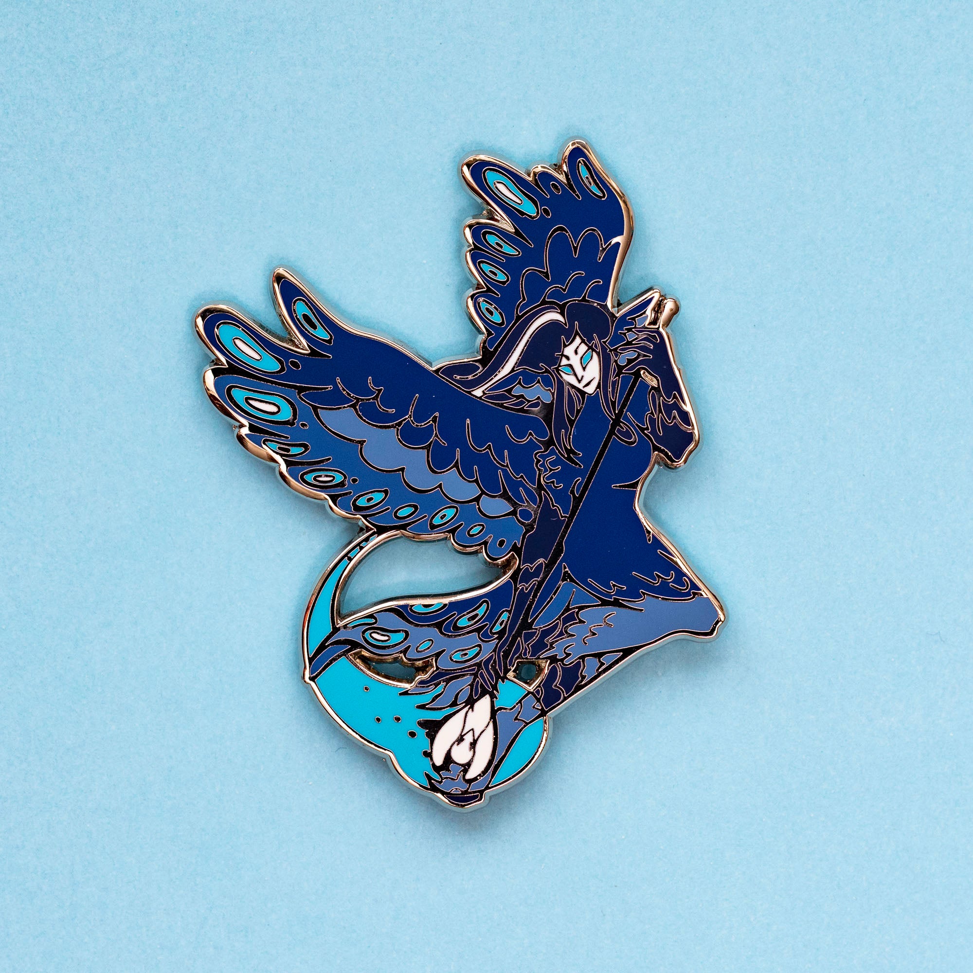Pins are hard enamel, with three pin posts and rubber clutches. Lilith features silver plating and is approximately 2 in (5 cm) on the longest side.